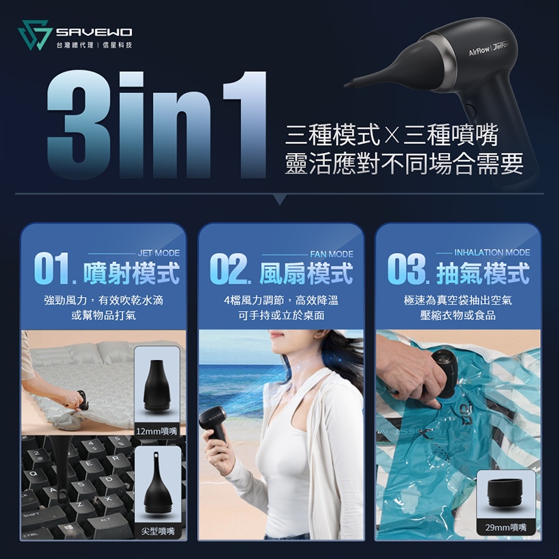 SAVEWO 救世 JetFan 狂暴風扇 吹+吸二合一 可上飛機 真空抽氣 除塵器 吹塵機 吹風槍 露營生火 信星科技黑色USB & Mobile FansFLYDIGI 飛智 官方旗艦店