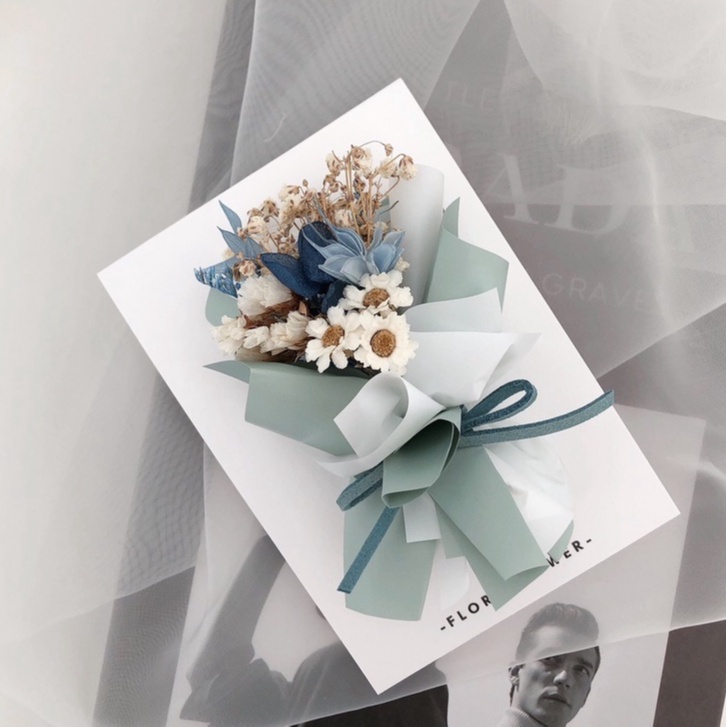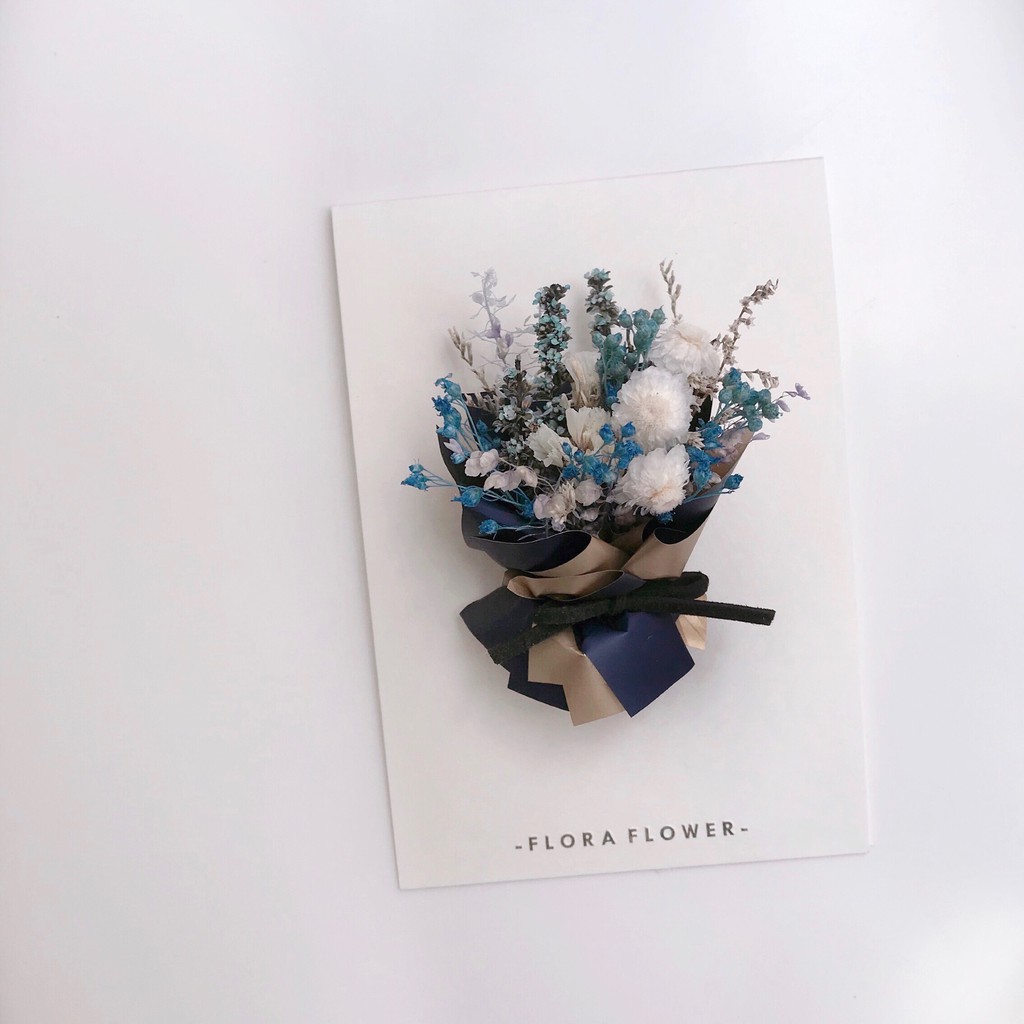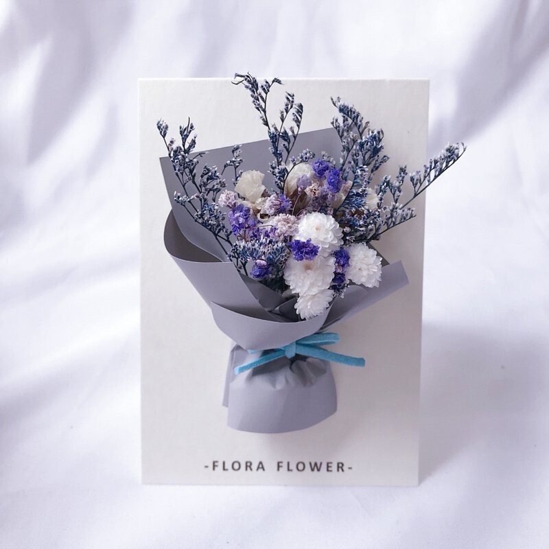 Floraflower 淺藍色系掀開式乾燥花卡片〖送禮必備〗盒裝 精美禮物 生日 情人節 母親節 父親節 畢業 紀念日圖二|圖一Flowersfloraflower