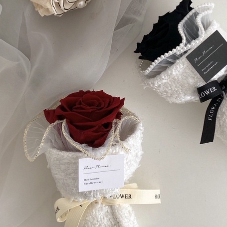 Floraflower 單支布料迷你玫瑰花束〖精美禮物〗小香風 高級花束 玫瑰花 永生花 生日 情人節 母親節 紀念日紅色,花束|紅色,花束+透明手提袋|黑色,花束|黑色,花束+透明手提袋Flowersfloraflower