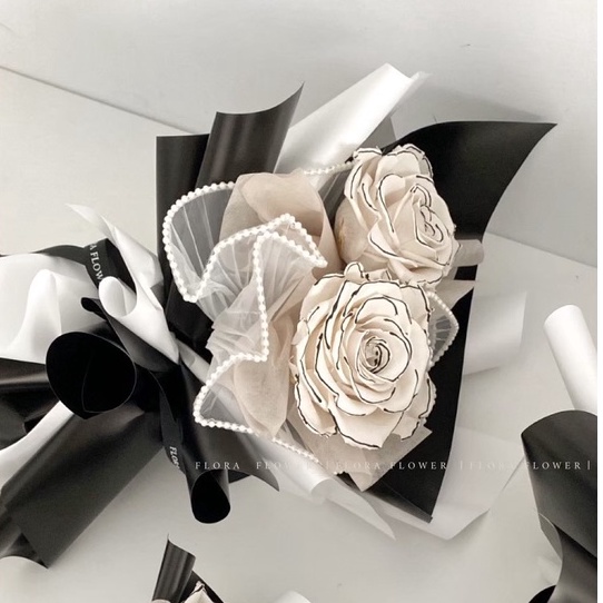 Floraflower 韓系黑白小香風花束〖高級禮物〗520 情人節 七夕 告白 浪漫 精美 質感 高級 永生花花束1朵|2朵Flowersfloraflower