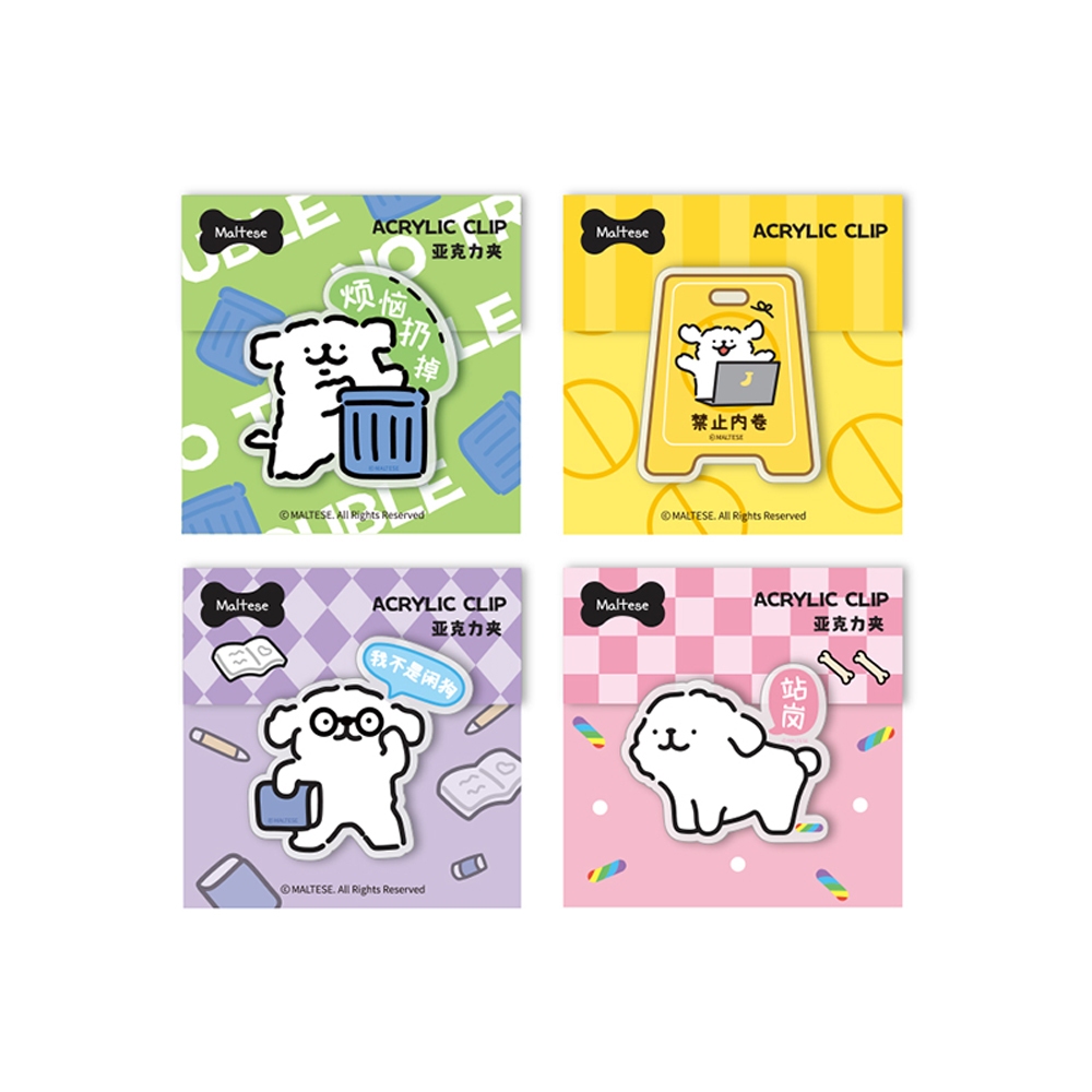Maltese線條小狗 壓克力夾閒狗款|內捲款|煩惱款|站崗款|叼走不愉快款|叼走壞運氣款|來啦款|內有惡犬款|星星眼款OthersFubees
