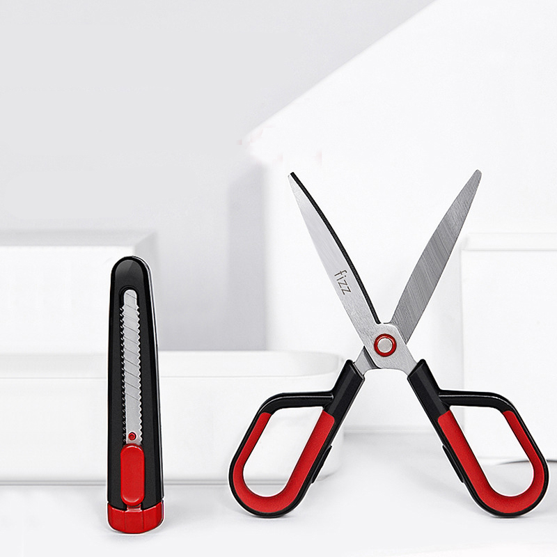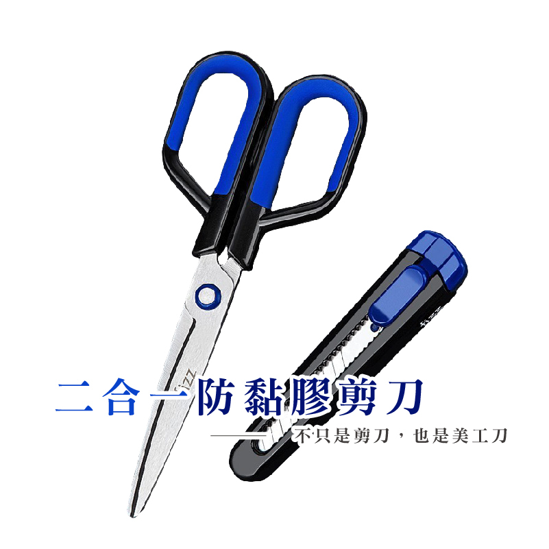 多功能防黏剪刀 二合一美工剪刀 二合一剪刀 剪刀 美工刀套 不鏽鋼剪刀 安全剪刀 一刀兩用 兩用剪刀_B764宇宙藍|赤焰紅ScissorsFS生活品專賣