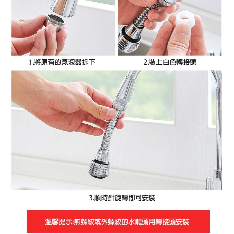廚房防濺水龍頭 噴頭 萬向起器 延伸器 水龍頭 兩段調節360度 水龍頭延伸器【DA059】轉接頭(不適用於軟管款)|一般款_長款 |一般款_短款|兩段式-長款|兩段式-短款|延伸軟管-27CM|延伸軟管-45CM Sinks & Water TapsFS生活品專賣
