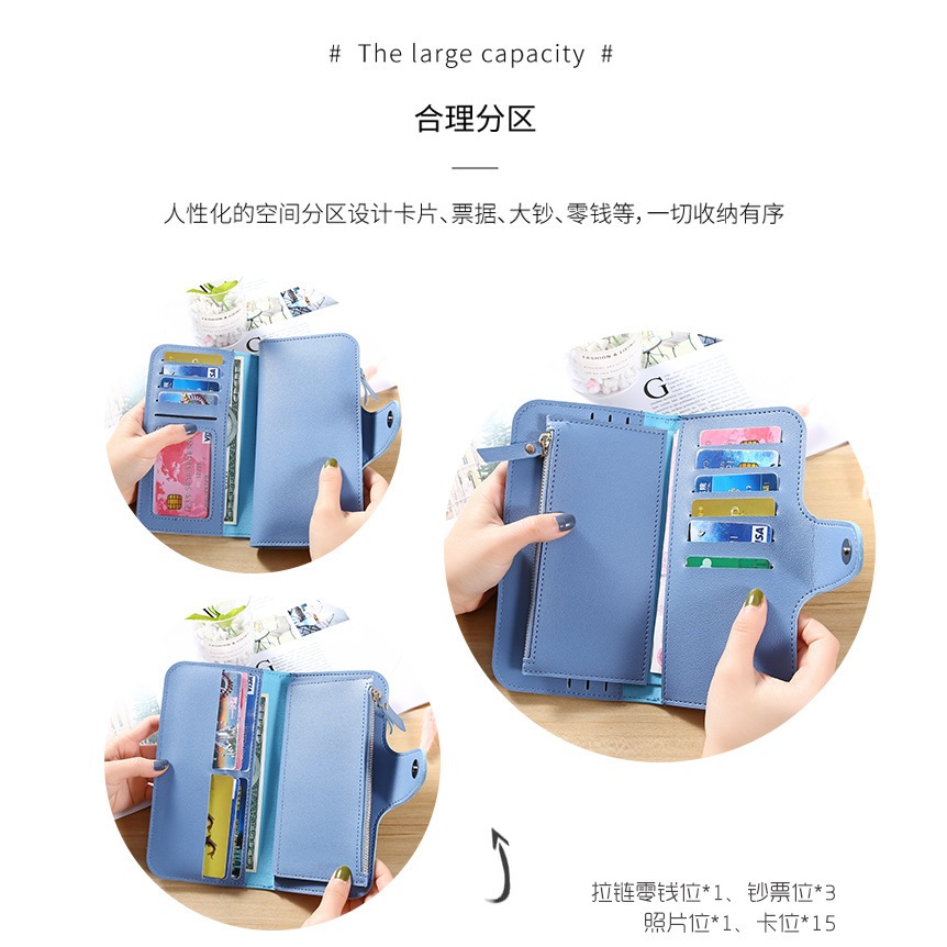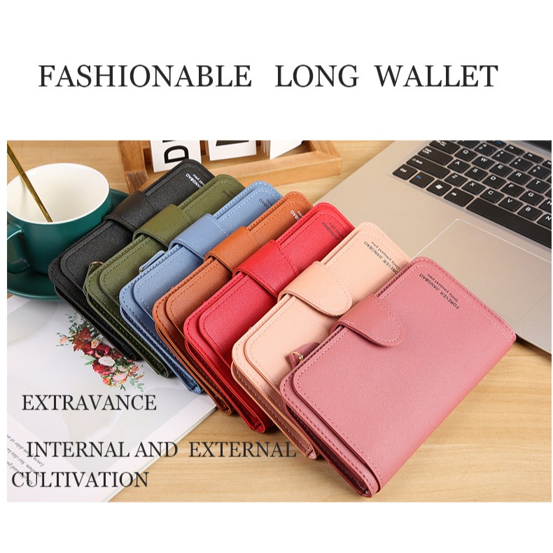 新款錢包女士三折長款 韓版卡包搭扣女錢夾多功能皮夾多卡位【BG433】磨砂灰|深粉|磨砂淺藍|磨砂棕|磨砂黑|粉|黑|墨綠|藍Long WalletsFS生活品專賣