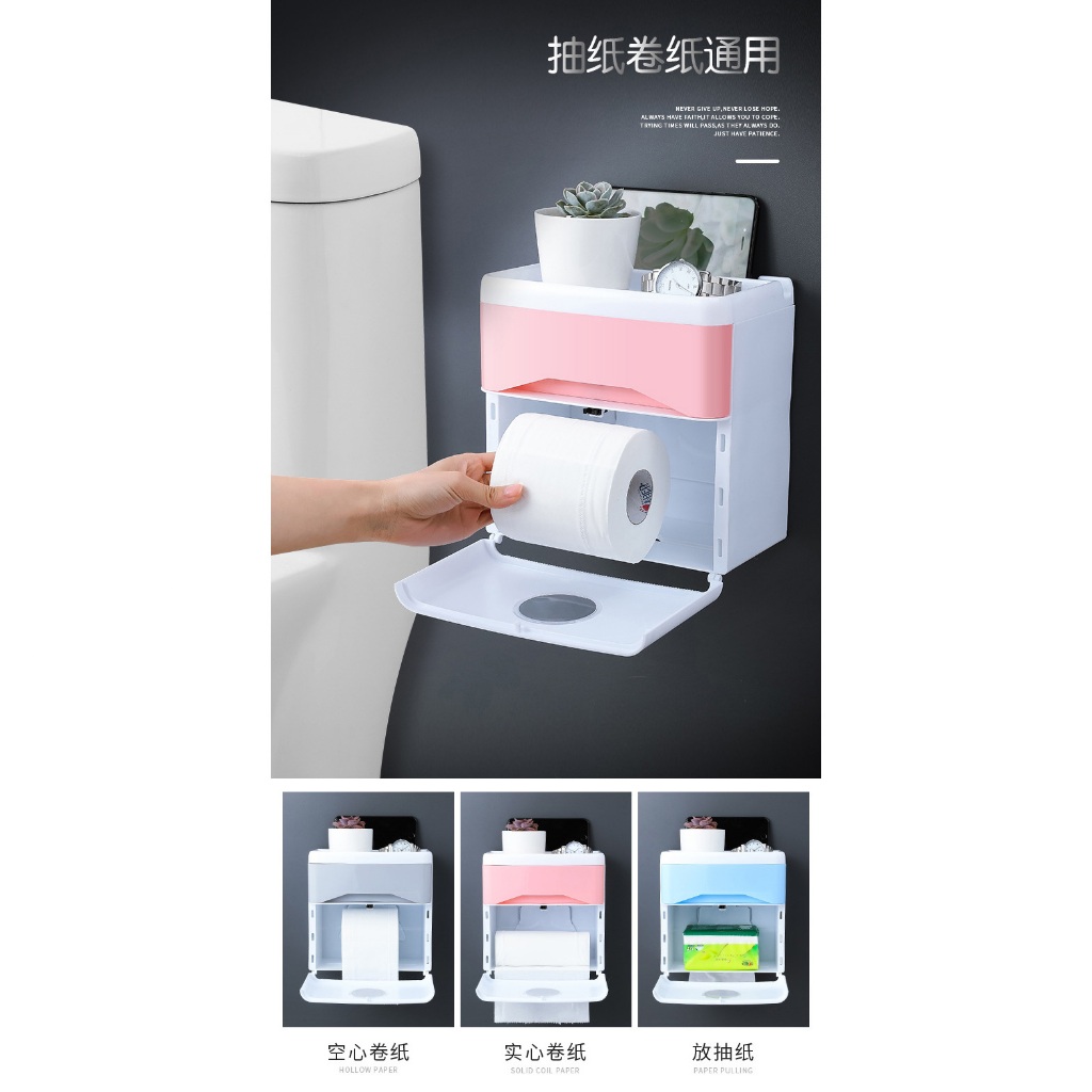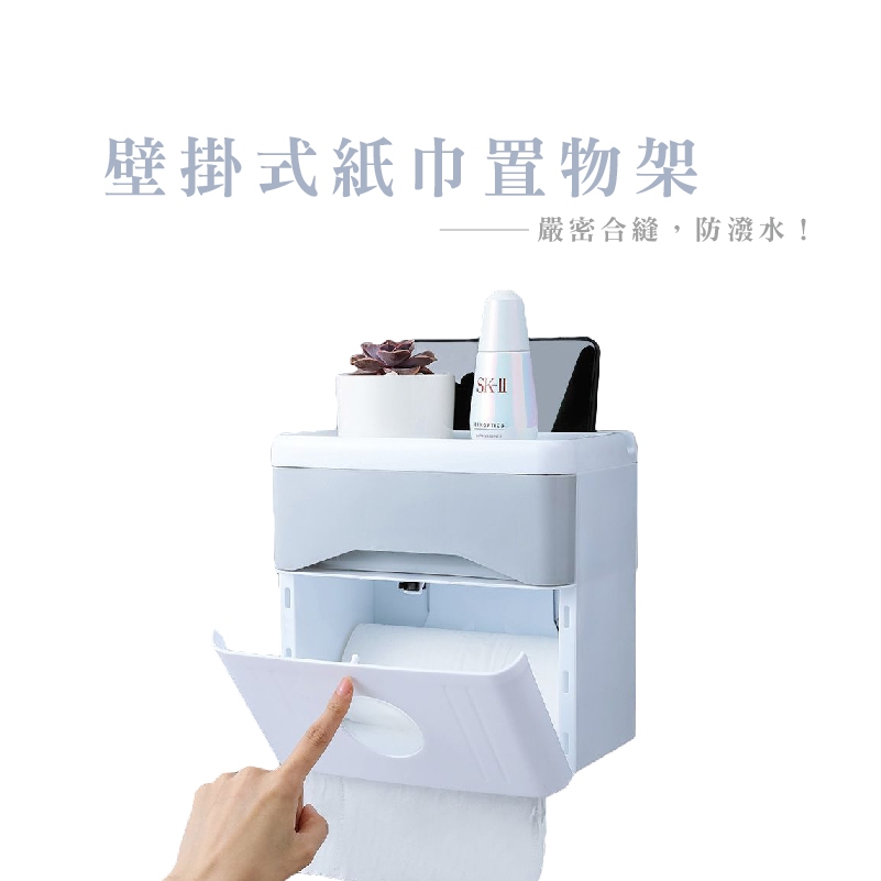 壁掛衛生紙盒 壁掛衛生紙盒 壁掛面紙盒 紙巾盒 面紙盒 雙層面紙盒 收納盒 置物盒 收納用品_DH001雙層面紙盒 _ 灰 Tissue HoldersFS生活品專賣