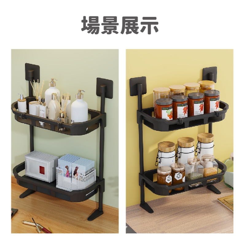 多功能置物架 壁貼架 馬桶置物架 浴室儲物收納架 廚房多功能架 免鑽孔置物架 置物架_HA335壁貼架_雙層黑|壁貼架_雙層白|壁貼架_三層黑|壁貼架_三層白Bathroom Racks & CabinetsFS生活品專賣