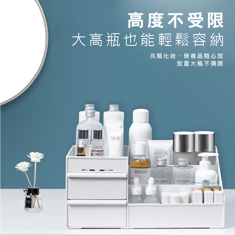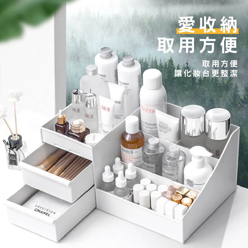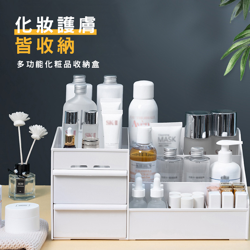 桌面化妝品收納盒 化妝品收納盒 桌面收納 文具收納盒 桌上收納 飾品收納 小物收納 多格整理盒 彩妝收納_HA371白|粉|藍|輕奢_奶白款|輕奢_透明款Desk OrganizersFS生活品專賣