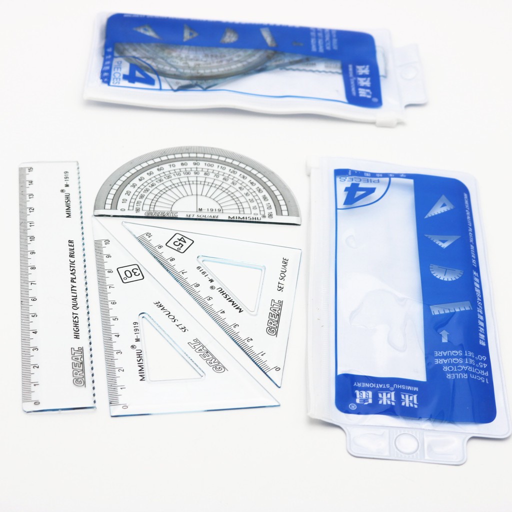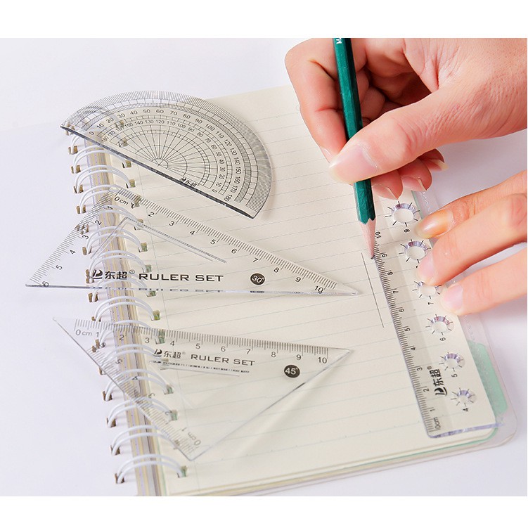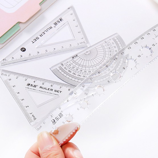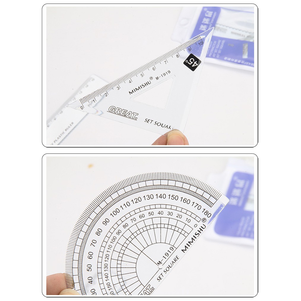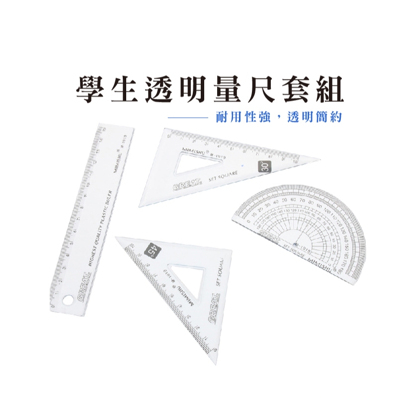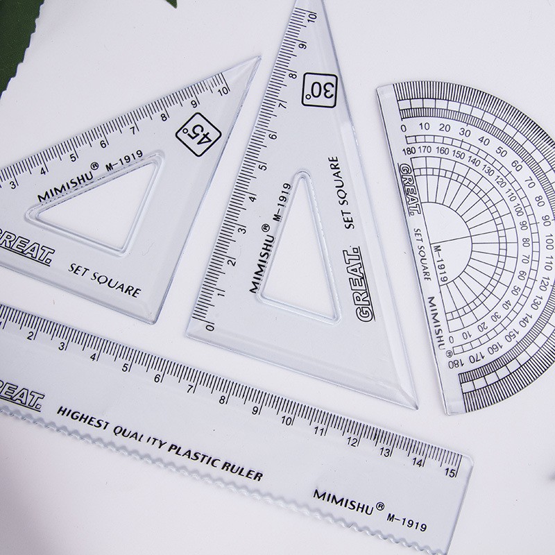 4件套透明三角板套裝 簡約辦公學習套尺 學生高級繪圖套裝尺 學生四件套 直尺 三角尺 量角器 測量尺 【B725】卡通款|量角器4件組_20cm(1034)|量角器4件組_15cmRulers, Protractors & StencilsFS生活品專賣