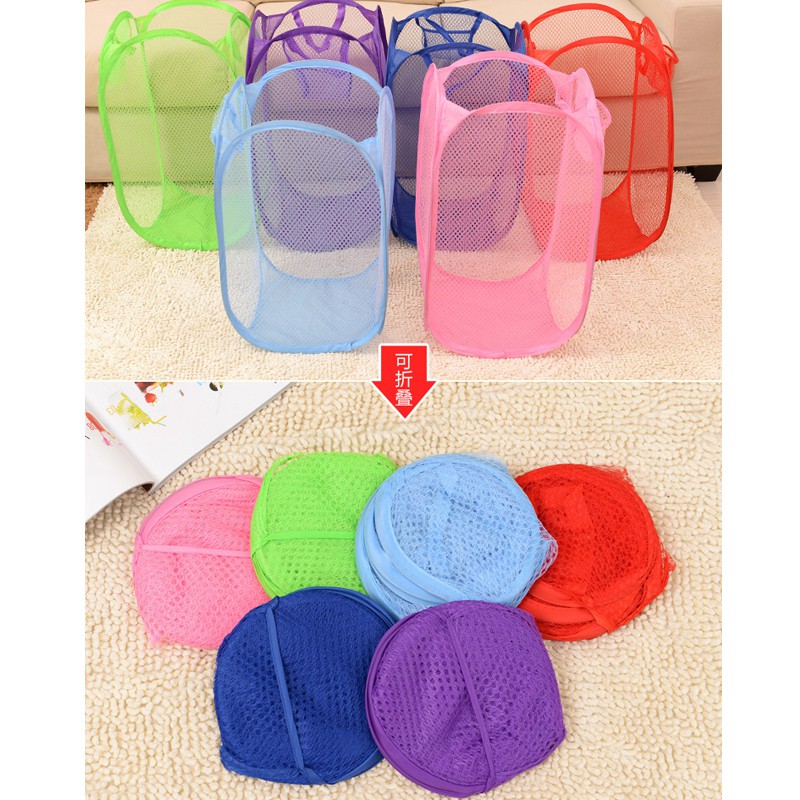 細網收納籃 摺疊洗衣籃 置物籃 髒衣籃 洗衣籃 籃子 收納 網髒衣籃 收納籃 髒衣藍 居家儲物籃【DH003】簡易版_隨機|粉色貓咪(帶蓋)|藍色大象(帶蓋)Laundry Bags & BasketsFS生活品專賣