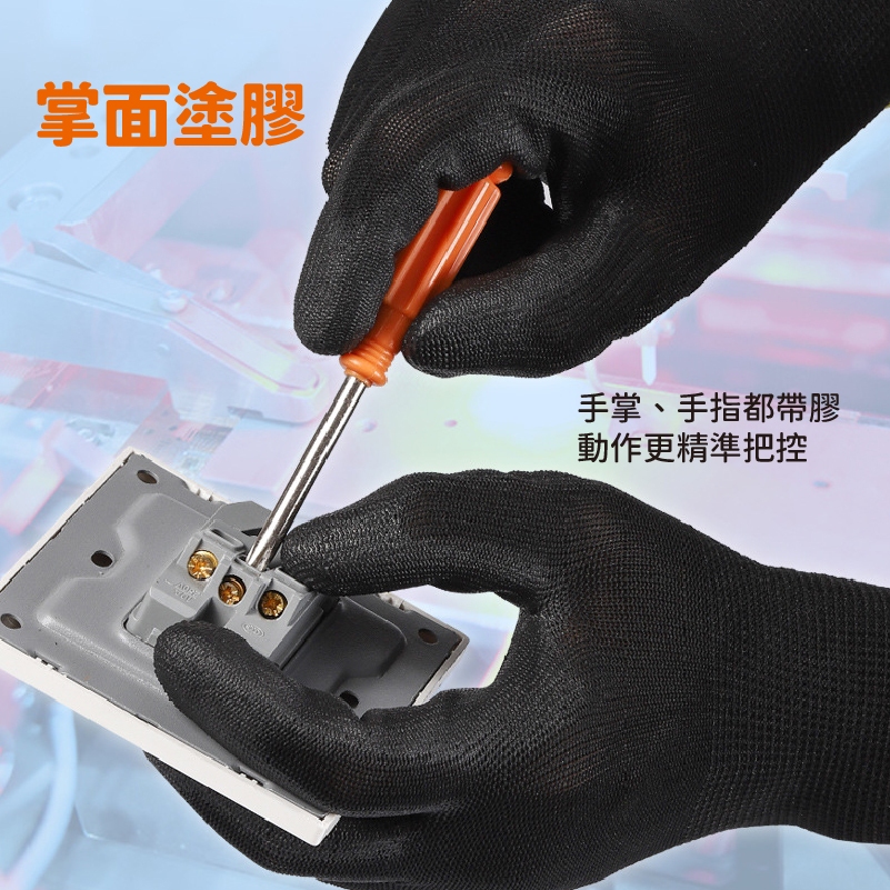 黑膠止滑透氣手套 輕薄透氣 工作手套 沾膠手套 防滑手套 止滑手套 PU塗掌手套 電子手套 搬運手套_E036塗掌防滑手套_S|塗掌防滑手套_M|塗掌防滑手套_LProtective Gloves, Goggles & MasksFS生活品專賣