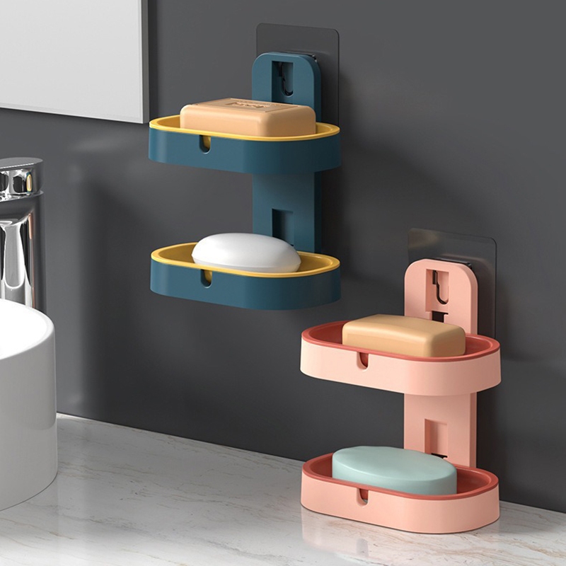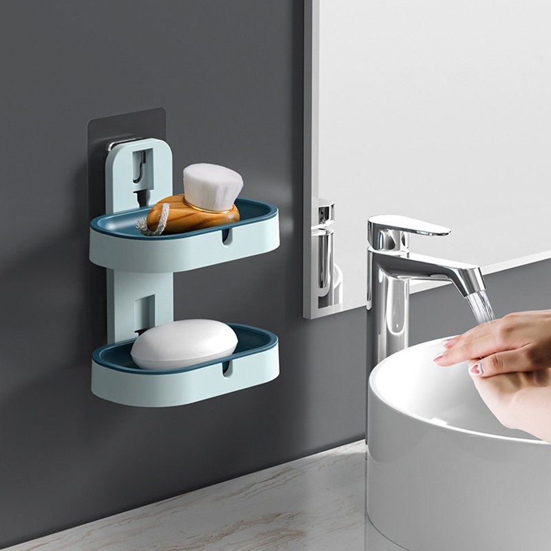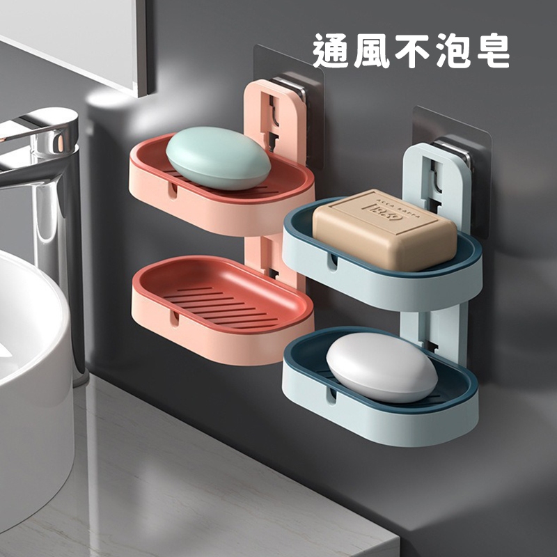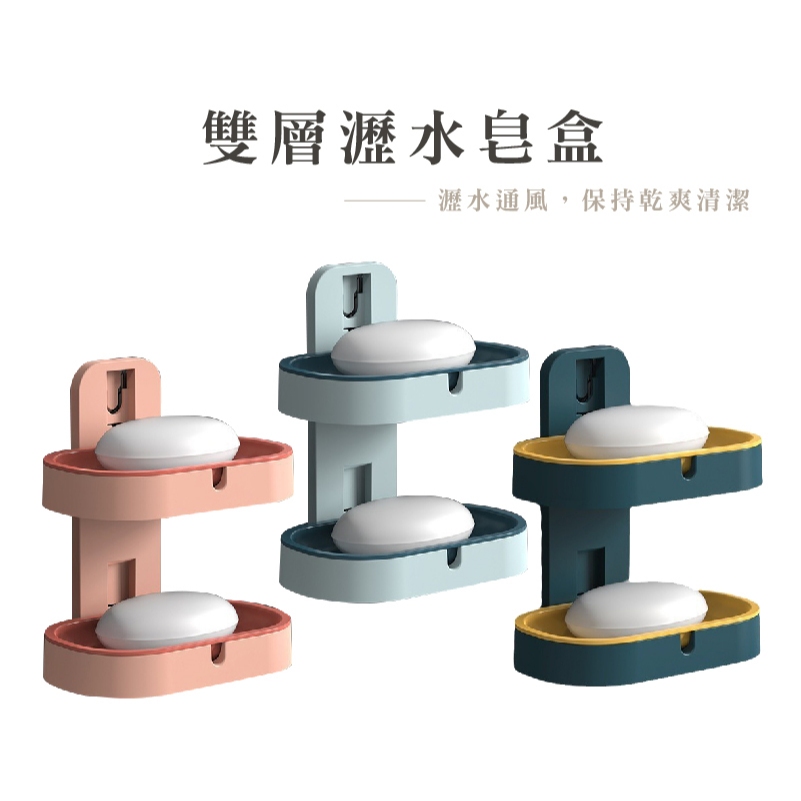 雙層壁掛瀝水皂盒 免打孔肥皂盒 浴室收納皂盤 肥皂盒 雙層肥皂盒 肥皂收納盒_DA017雙層肥皂盒_粉|雙層肥皂盒_深藍|雙層肥皂盒_淺藍Soap Dispensers, Holders & BoxesFS生活品專賣
