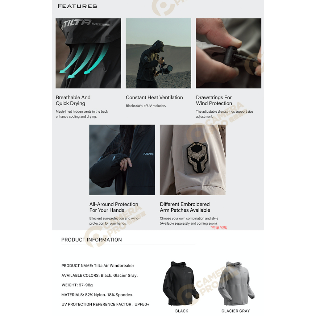 TILTA Air Windbreaker 薄型防風外套 防曬風衣 UV UPF50+ 黑 冰川灰 相機專家 公司貨冰川灰,XL|黑色,S|黑色,M|黑色,XL|黑色,XXL|冰川灰,M|黑色,L|冰川灰,S|冰川灰,L|冰川灰,XXLOtherscamerapro 相機專家