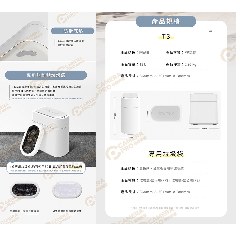 townew 拓牛 (預購) T3 感應式智能垃圾桶 13L 自動打包鋪袋 續航80天 IPX3防水 相機專家 公司貨