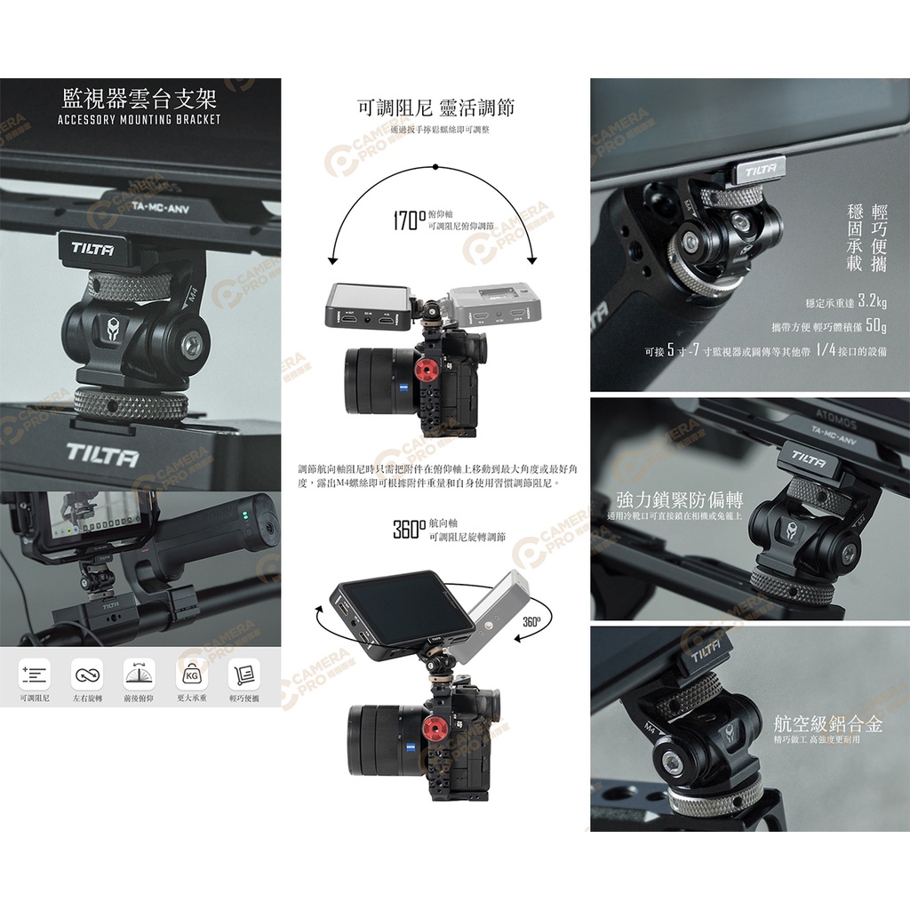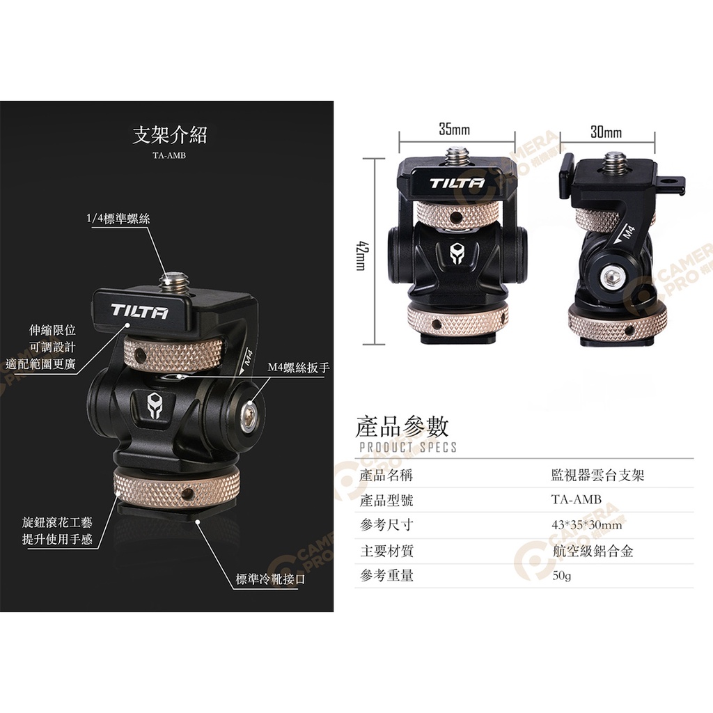 TILTA 鐵頭 TA-AMB-B 監視器雲台支架 可調式 冷靴 1/4 擴充 監視螢幕 補光燈 相機專家 公司貨
