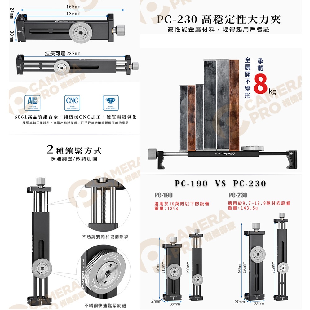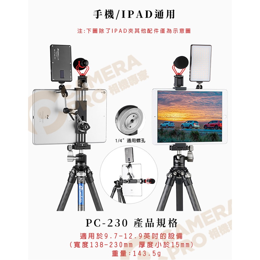 Leofoto 徠圖 PC-230 高穩定性手機 IPAD大力夾 1/4螺孔 阿卡標準燕尾槽 [相機專家] 公司貨Leofoto 徠圖 PC-230 高穩定性手機 IPAD大力夾 1/4螺孔 阿卡標準燕尾槽 [相機專家] 公司貨Tripods, Monopods, & Accessoriescamerapro 相機專家