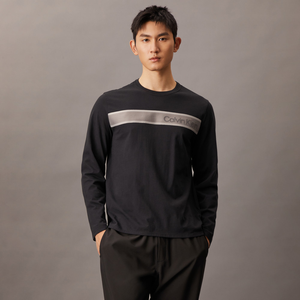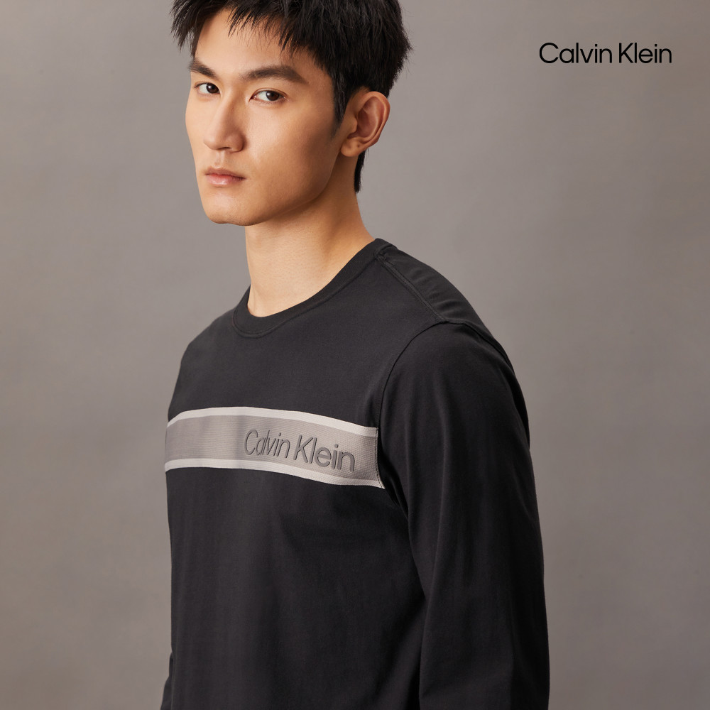 【Calvin Klein】 CK 標誌飾帶長袖 T 恤_黑色M|XL|SCalvin Klein 官方旗艦店