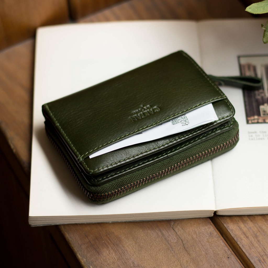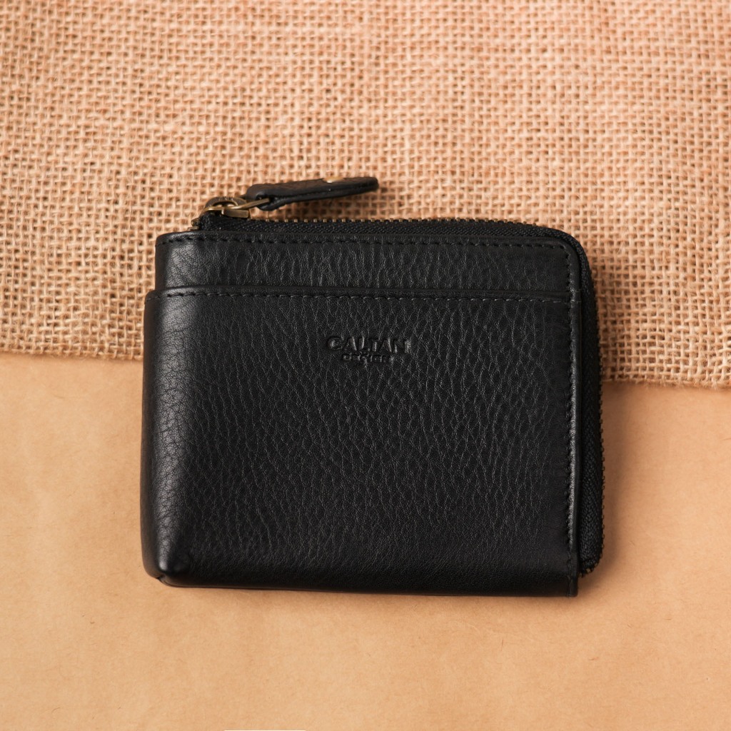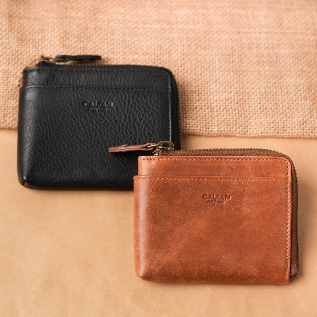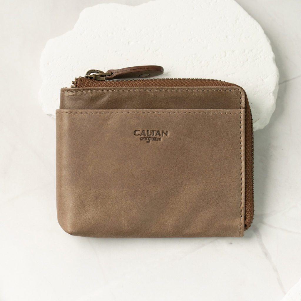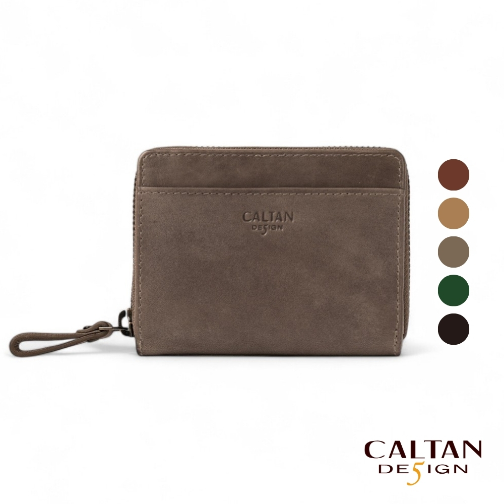 【CALTAN】真皮/中夾 | 簡約真皮ㄇ字型拉鍊時尚短夾-074350_五色霧面奶茶|百搭咖啡|森林綠色|時尚黑色|焦糖拿鐵Bifold & Trifold WalletsCALTAN DESIGN 頭層牛皮皮件館