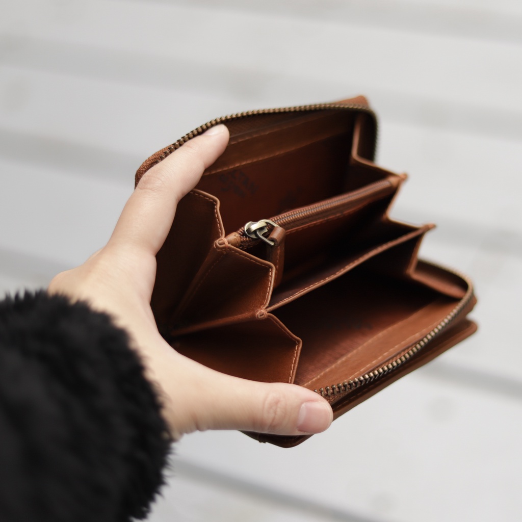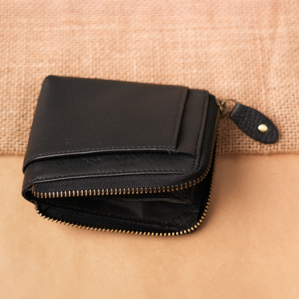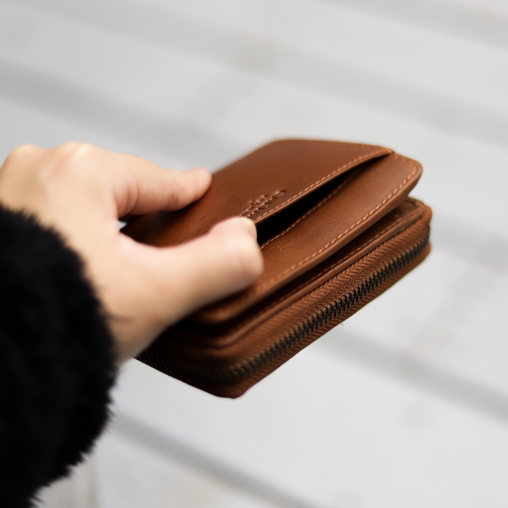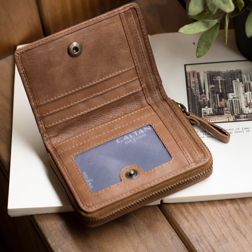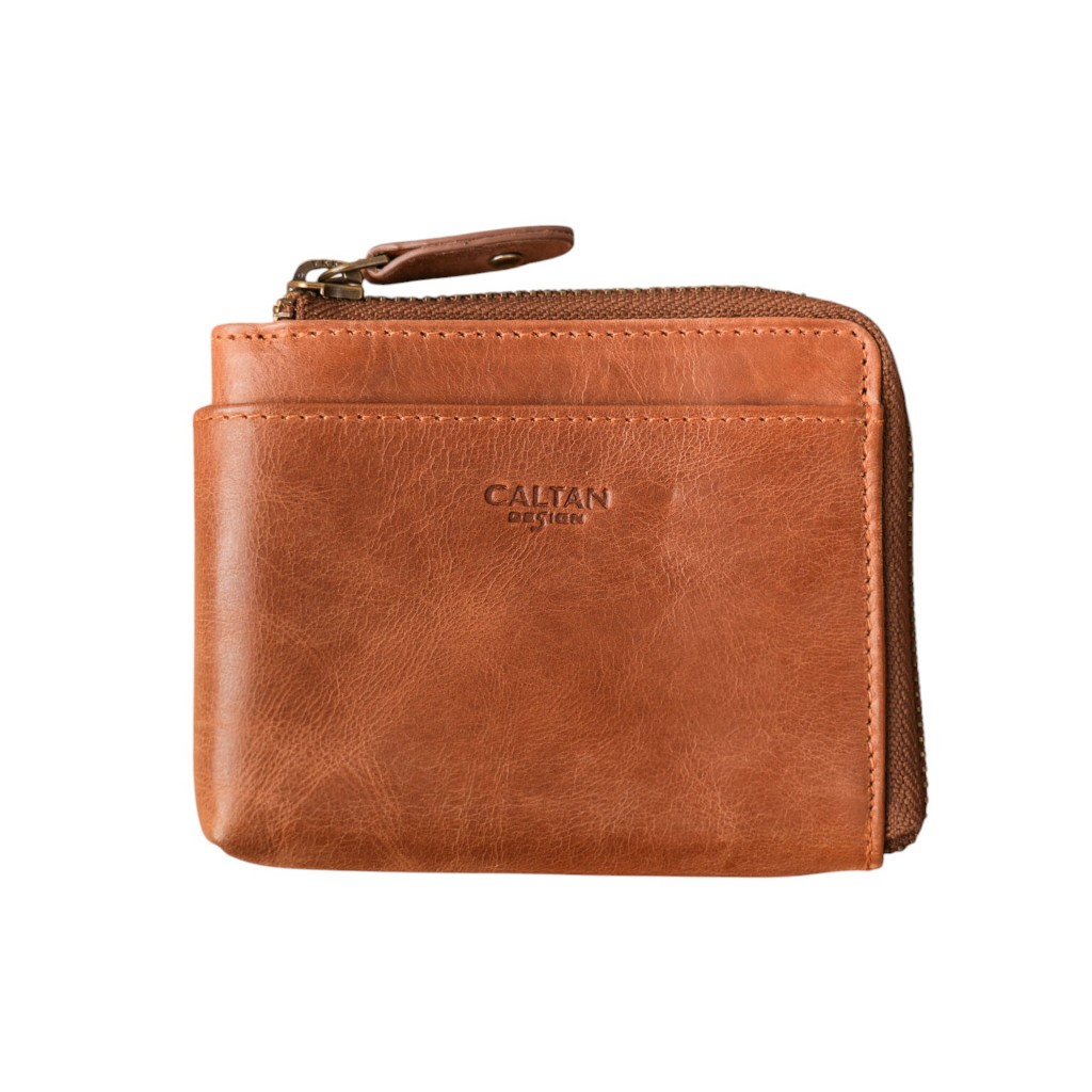 【CALTAN】真皮/中夾 | 簡約真皮ㄇ字型拉鍊時尚短夾-074350_五色霧面奶茶|百搭咖啡|森林綠色|時尚黑色|焦糖拿鐵Bifold & Trifold WalletsCALTAN DESIGN 頭層牛皮皮件館