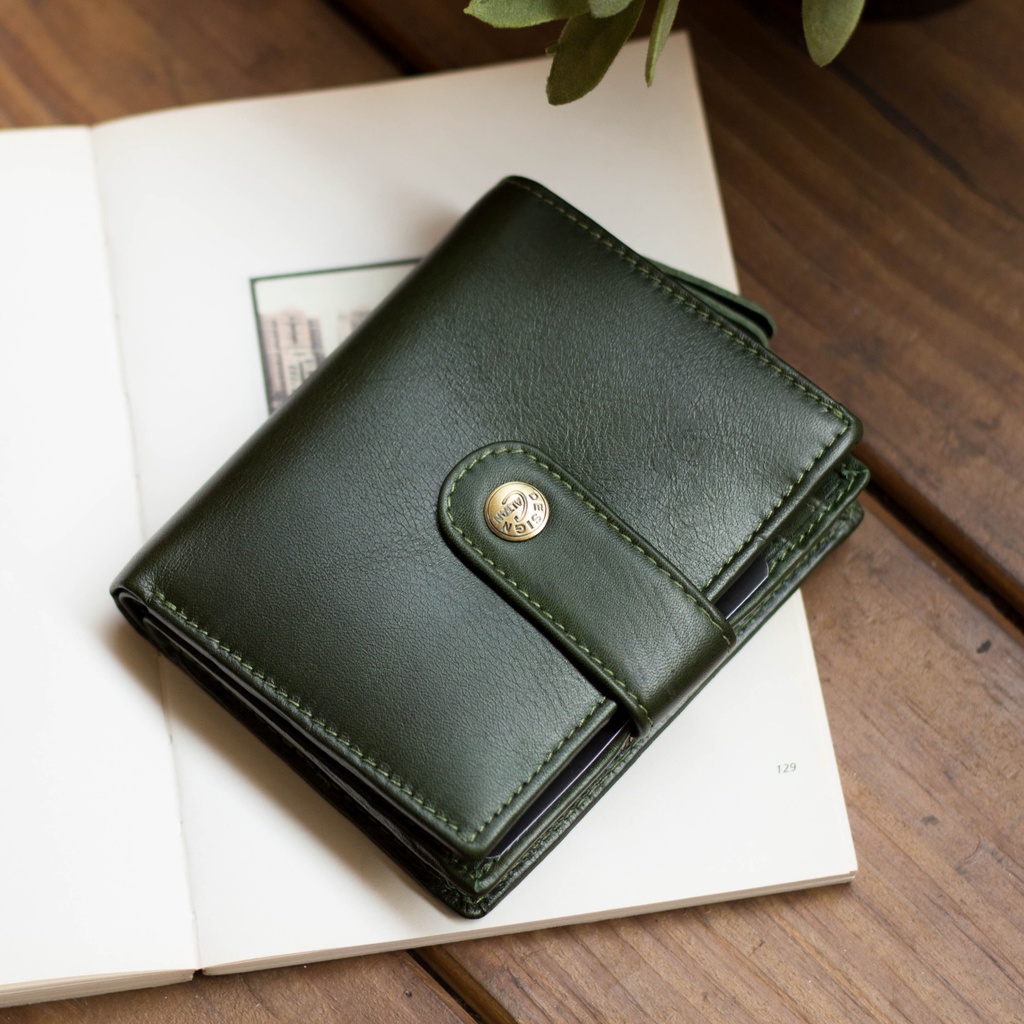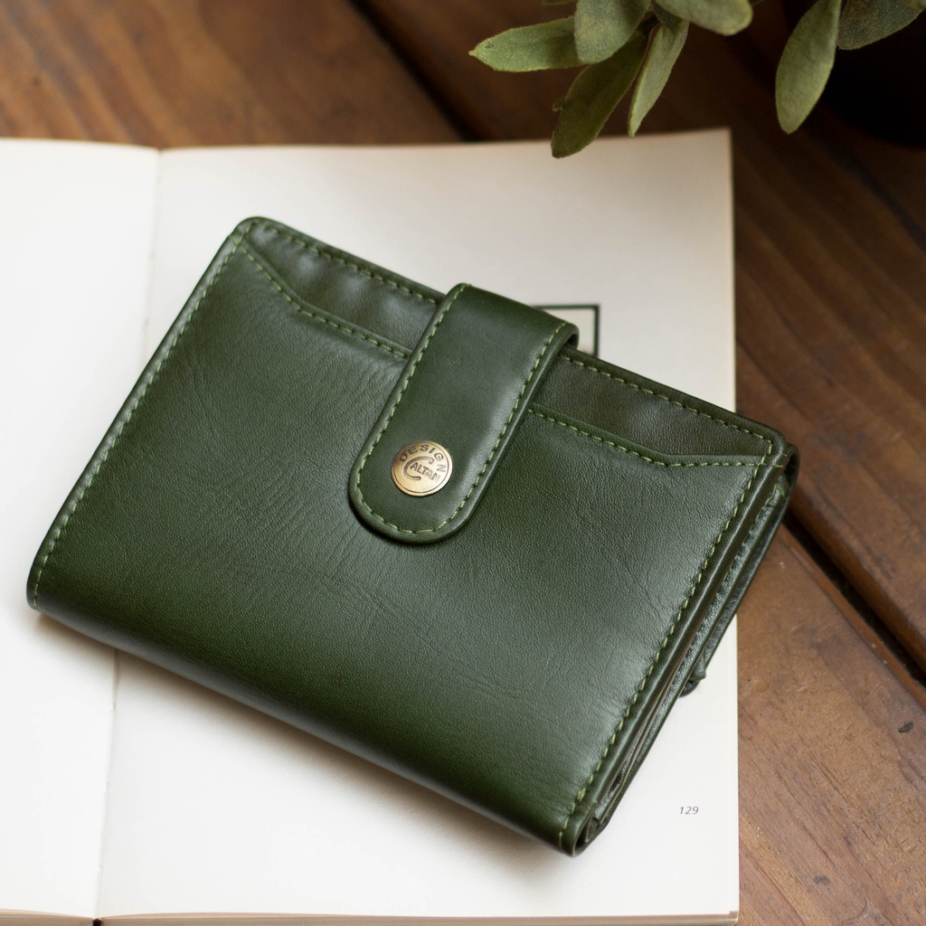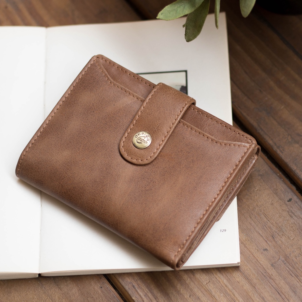 【CALTAN】真皮/中夾 | 小文藝扣式真皮短夾-075055_五色 零錢包 小皮夾百搭咖啡|森林綠色|霧面奶茶|時尚黑色|焦糖拿鐵Bifold & Trifold WalletsCALTAN DESIGN 頭層牛皮皮件館