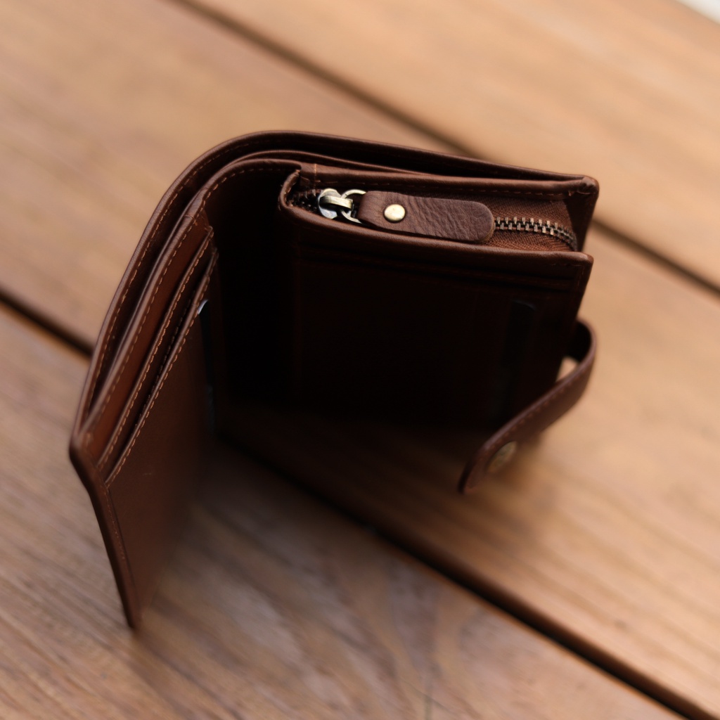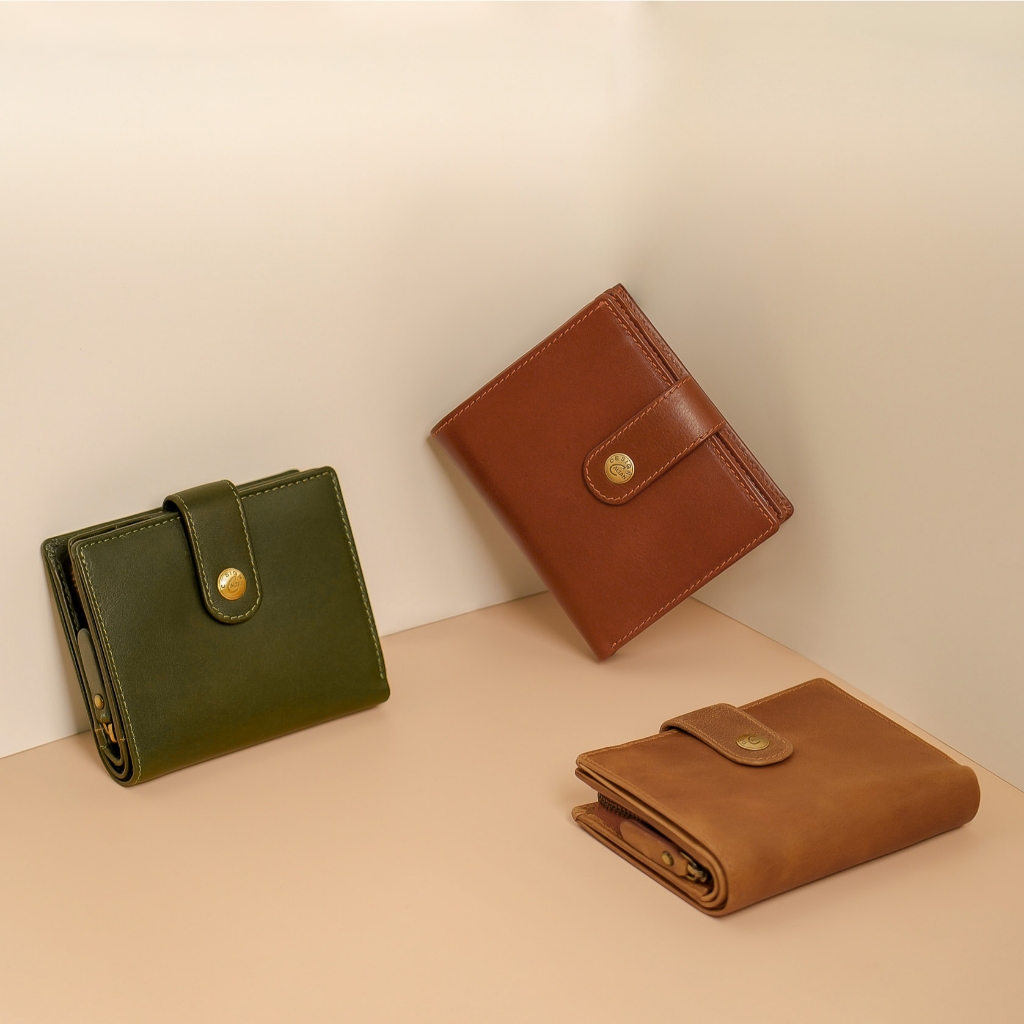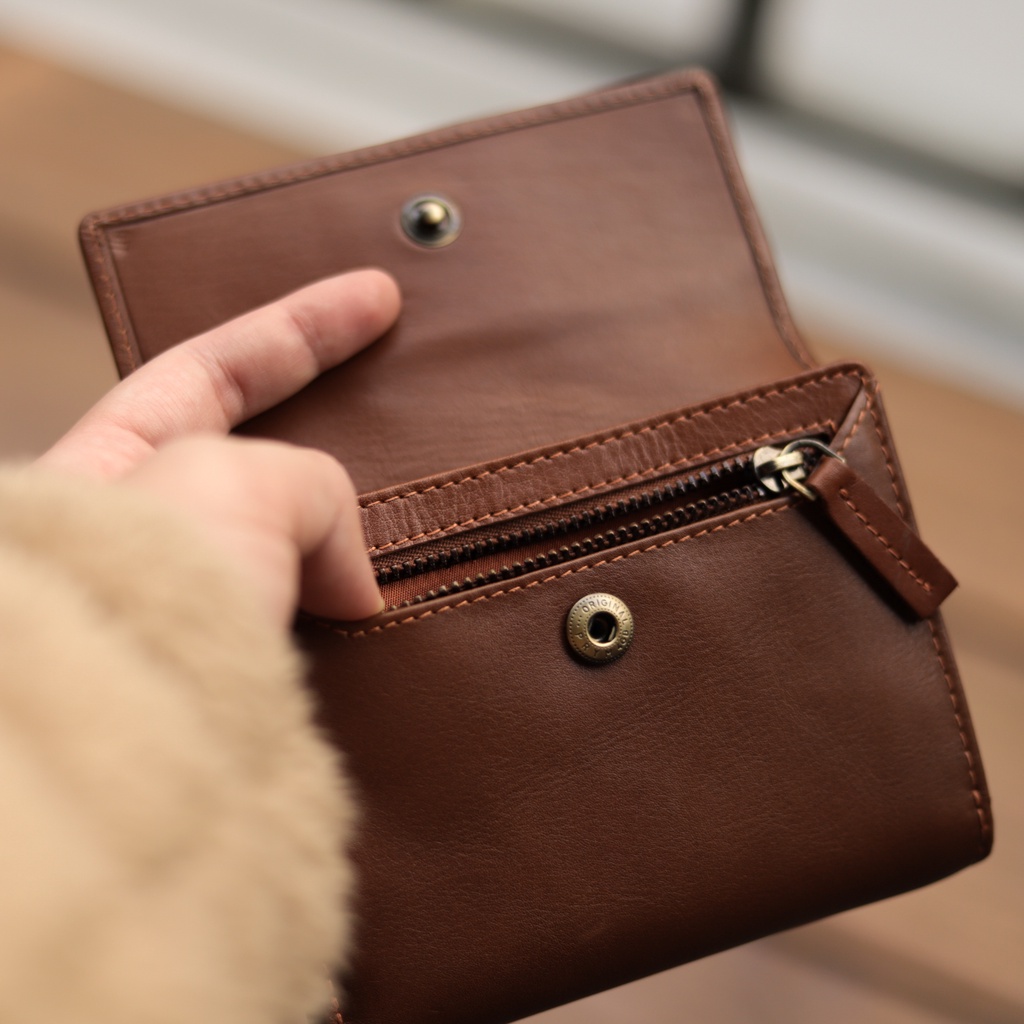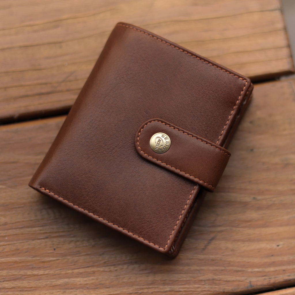 【CALTAN】真皮/中夾 | 小文藝扣式真皮短夾-075055_五色 零錢包 小皮夾百搭咖啡|森林綠色|霧面奶茶|時尚黑色|焦糖拿鐵Bifold & Trifold WalletsCALTAN DESIGN 頭層牛皮皮件館
