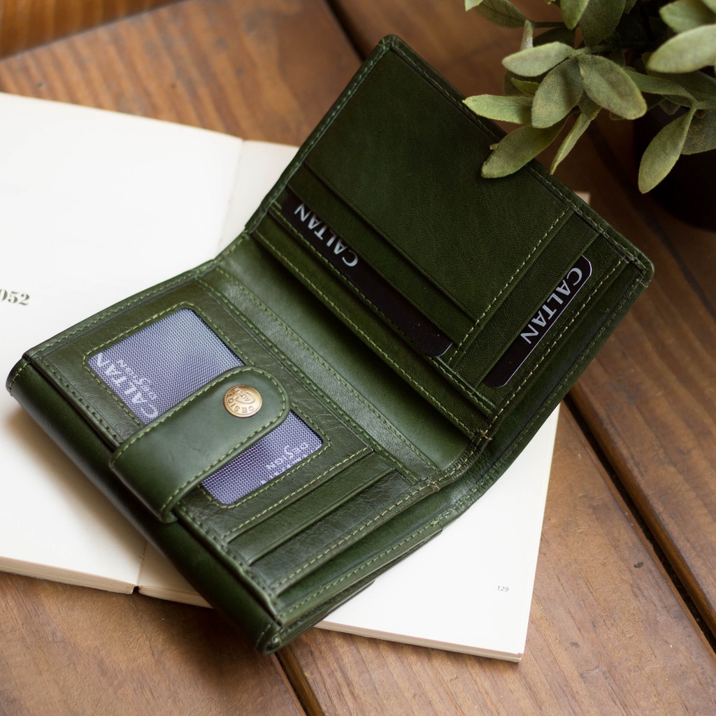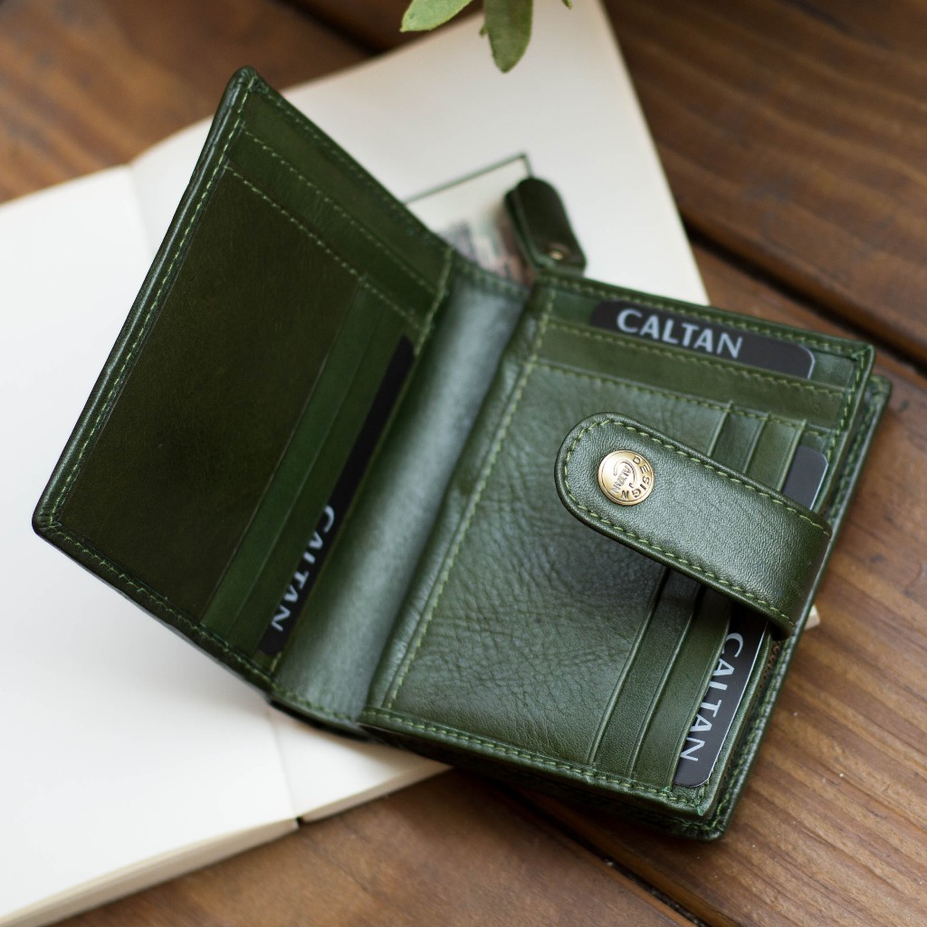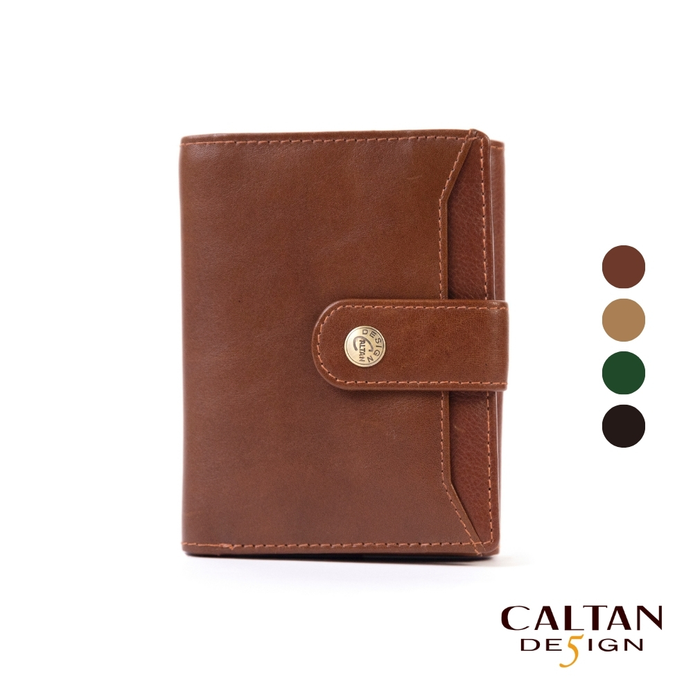 【CALTAN】真皮/中夾 | 真皮英倫風雙釦式多功能中夾-074351_四色百搭咖啡|霧面奶茶|森林綠色|時尚黑色Bifold & Trifold WalletsCALTAN DESIGN 頭層牛皮皮件館
