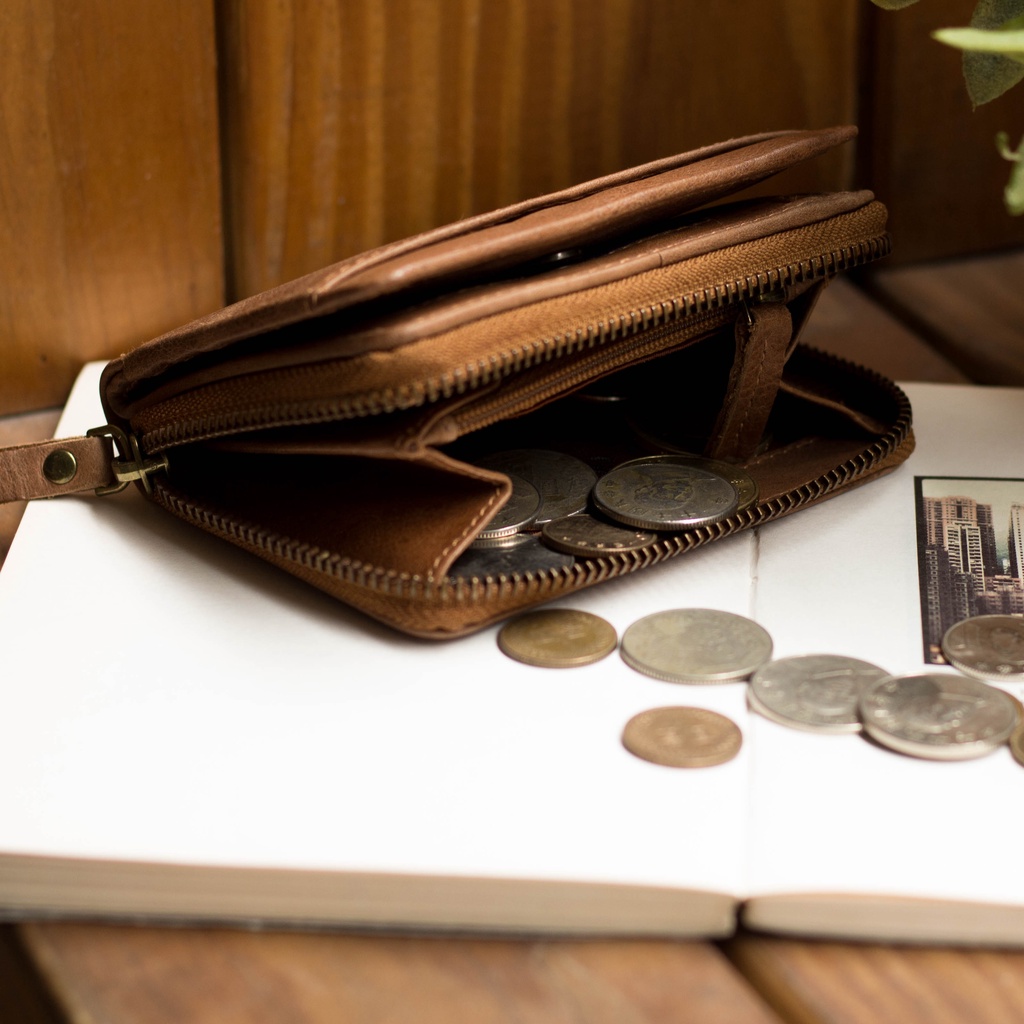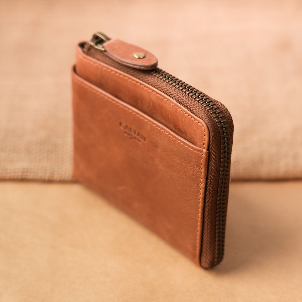【CALTAN】牛皮/零錢包|真皮L型拉鍊卡片小零錢包-1821三色復古油蠟|時尚黑色|焦糖拿鐵Coin Holders & PursesCALTAN DESIGN 頭層牛皮皮件館