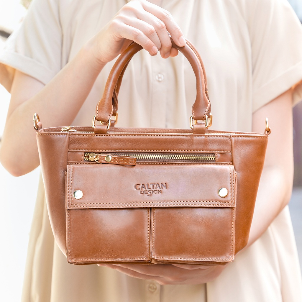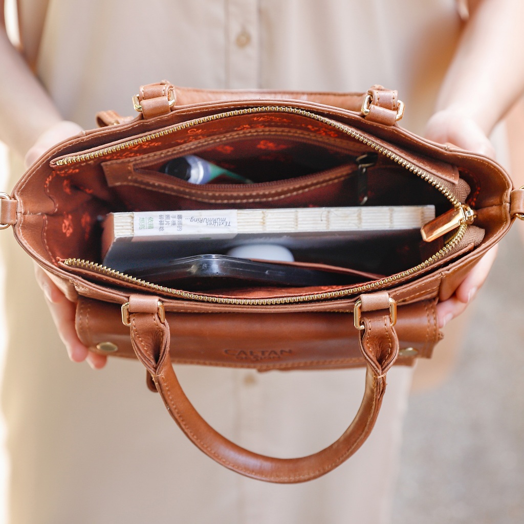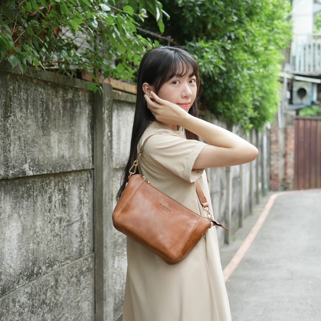 【CALTAN】牛皮/側背包 | 經典雙口袋真皮手提包-5533_兩色復古油蠟|焦糖拿鐵CALTAN DESIGN 頭層牛皮皮件館