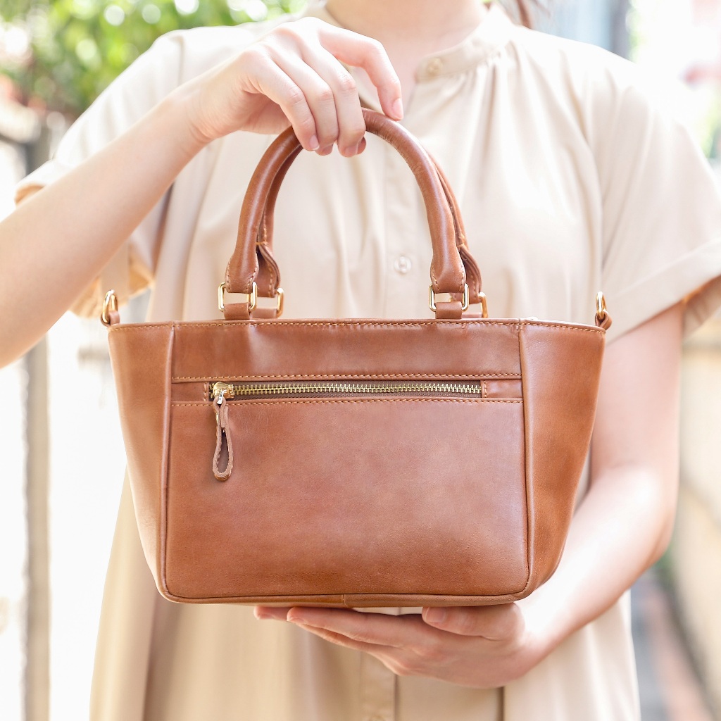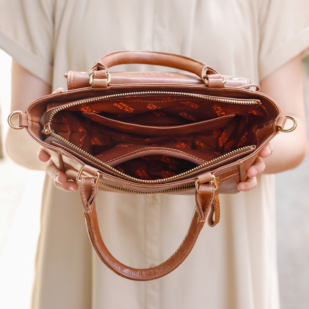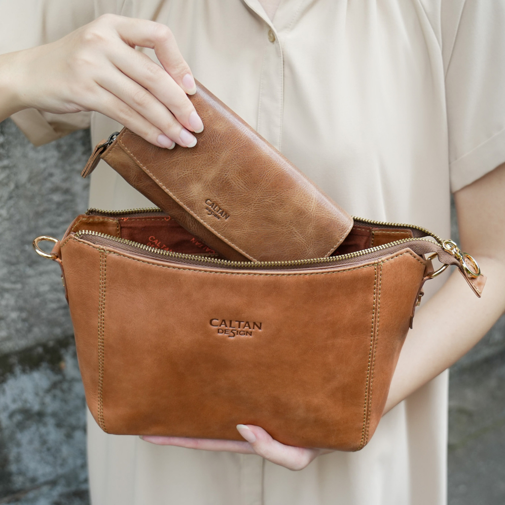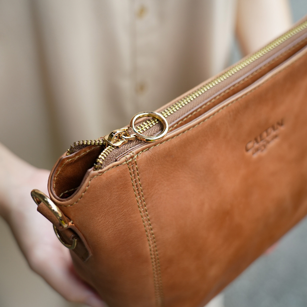 【CALTAN】牛皮/側背包 | 經典雙口袋真皮手提包-5533_兩色復古油蠟|焦糖拿鐵CALTAN DESIGN 頭層牛皮皮件館
