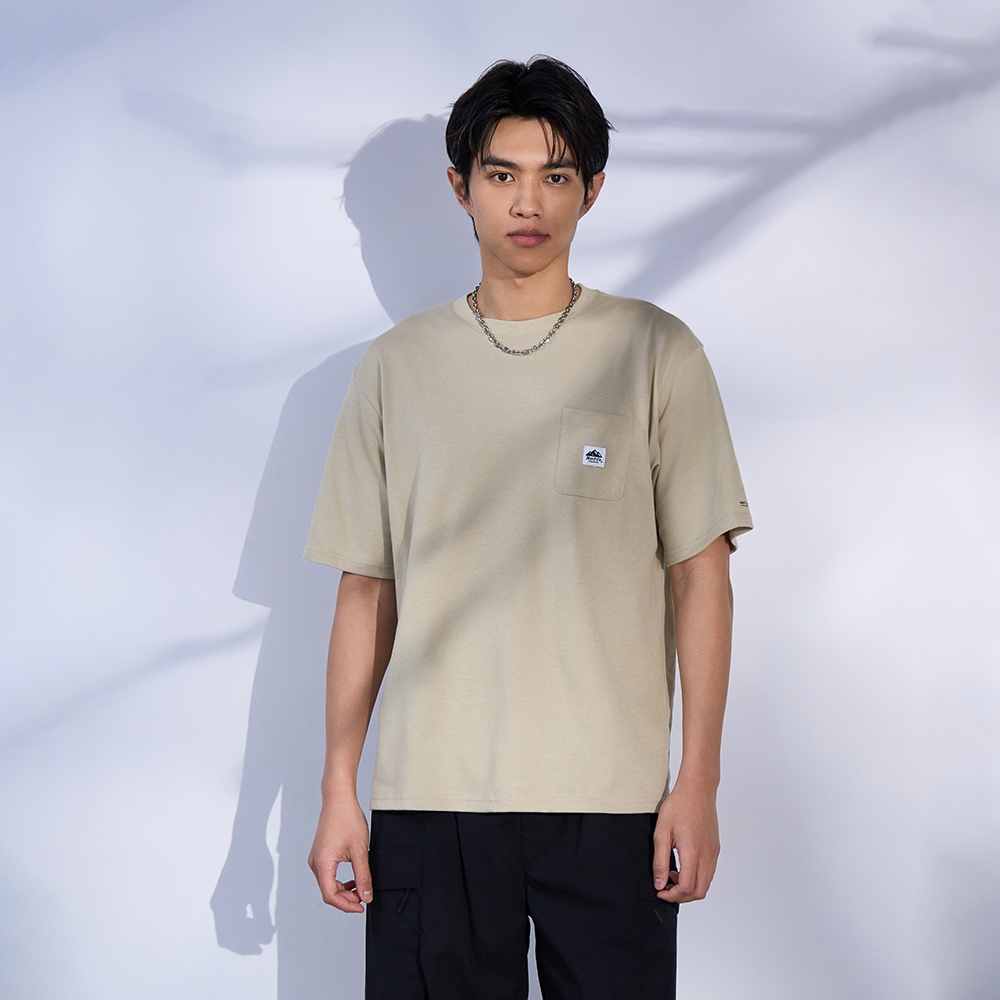 CACO-MIT 背圖山岳剪影口袋短T‧情侶款(二色)-女【J2NA021】09黑,S|09黑,M|27淺杏,S|27淺杏,MT-shirtscaco_tw