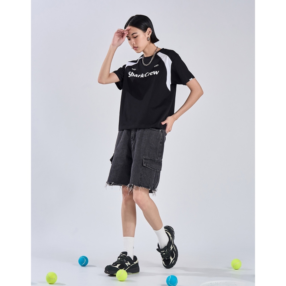 CACO-拼接款足球服短T‧情侶款(二色)-女【J2NA038】09黑,S|09黑,M|27淺杏,S|27淺杏,MT-shirtscaco_tw
