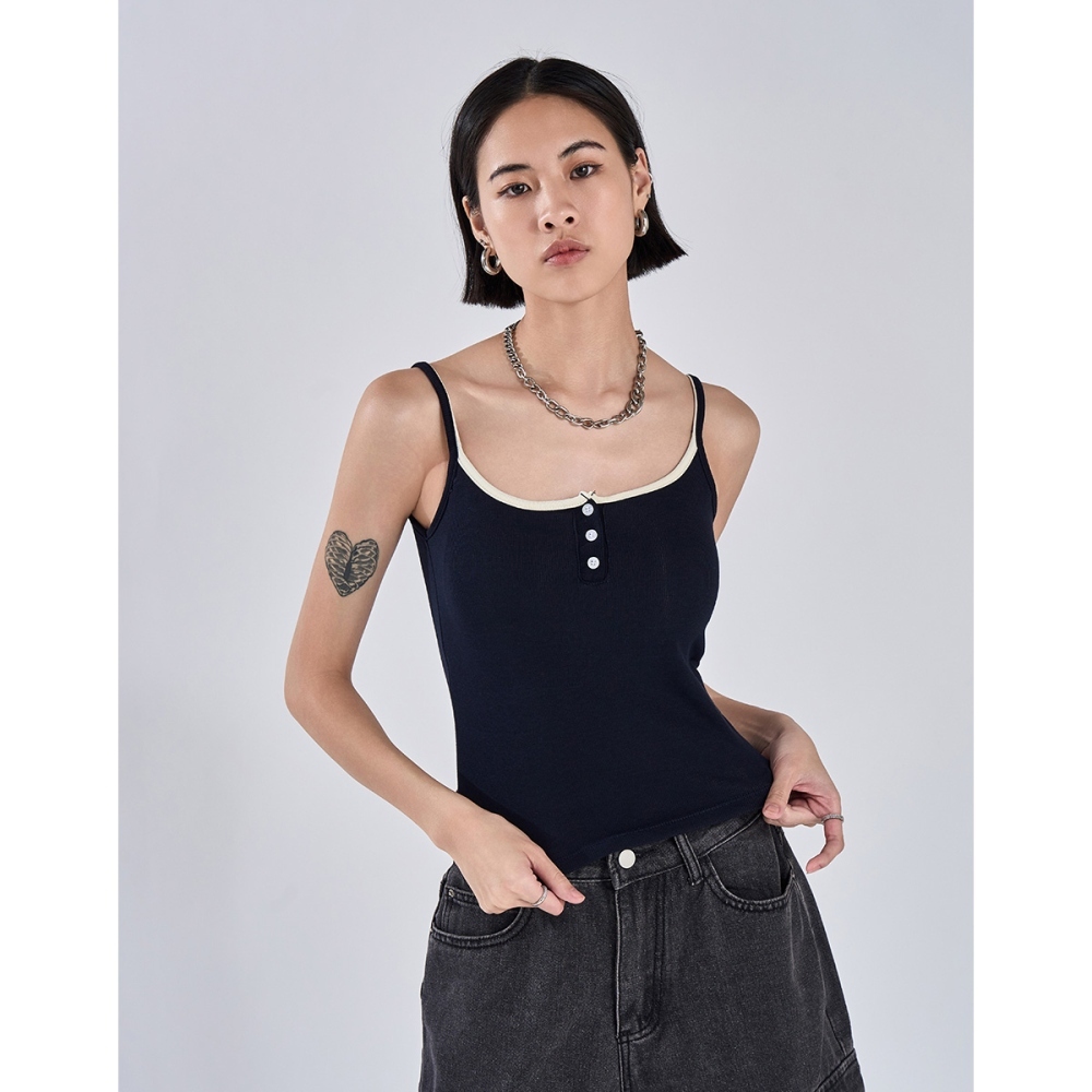 CACO-舒適坑條撞色開釦Bratop(二色)-女【J2NA057】