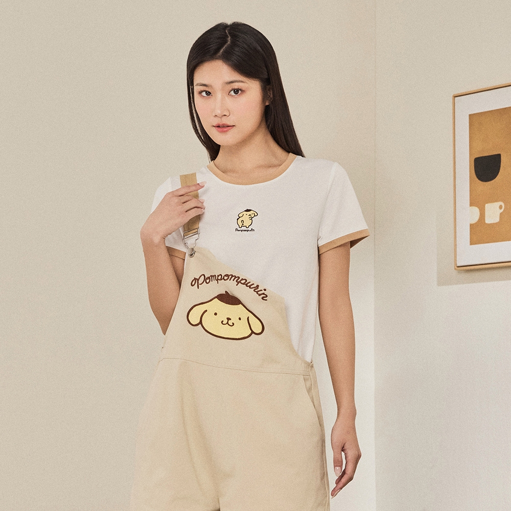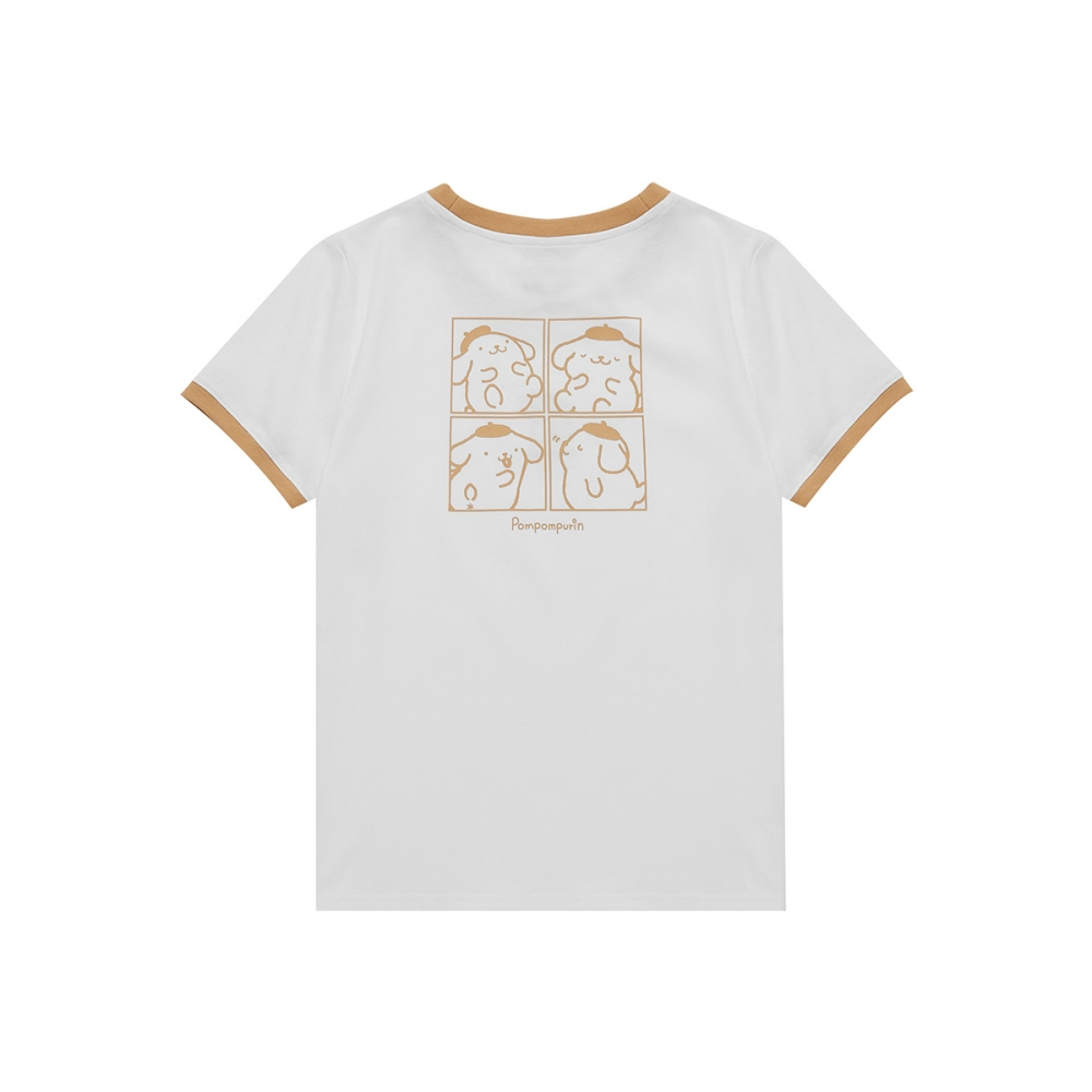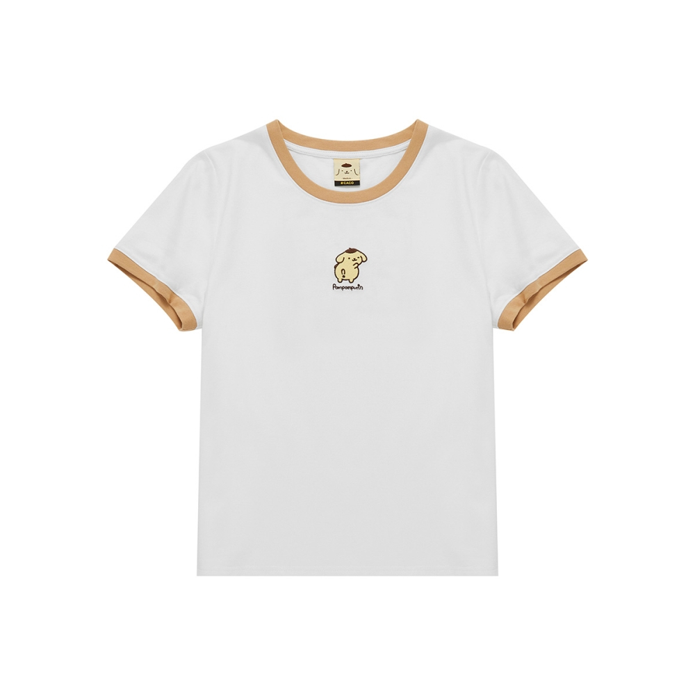 CACO-布丁狗撞色滾邊上衣‧情侶款-女【J2SA006】01白,S|01白,M|01白,LT-shirtscaco_tw