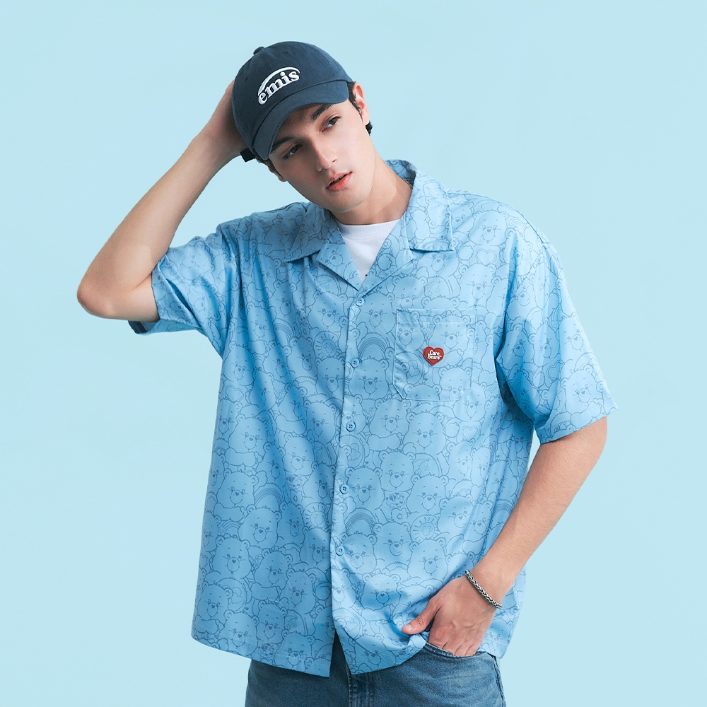 CACO-Care Bears滿版印花襯衫-男【J1CB003】71藍,S|71藍,M|71藍,LShirtscaco_tw