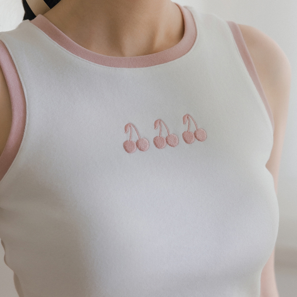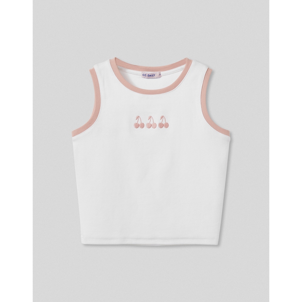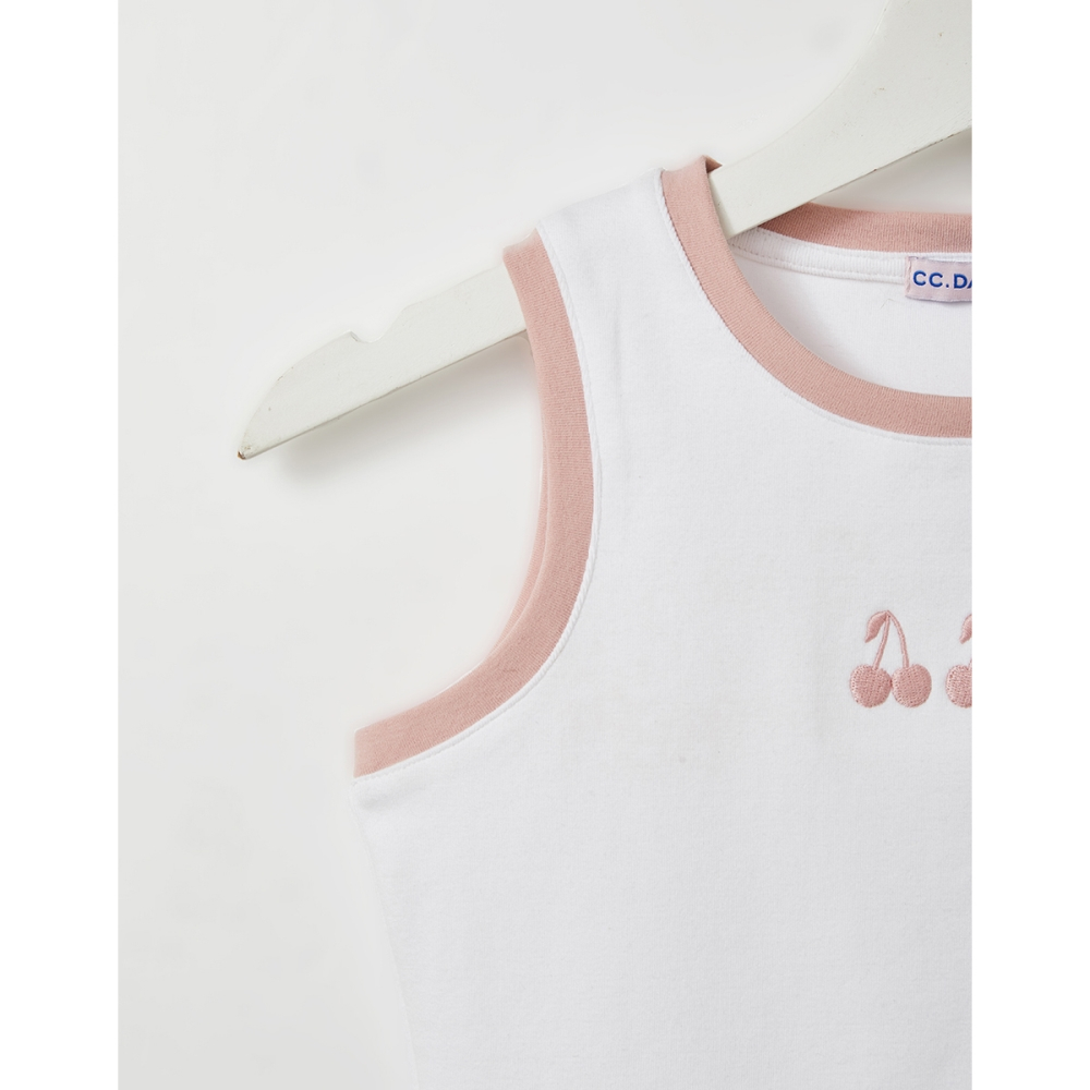 CC.DAILY-櫻桃電繡撞色背心-女【J2CO011】01白,S|01白,M|01白,LTanks & Camisolescaco_tw
