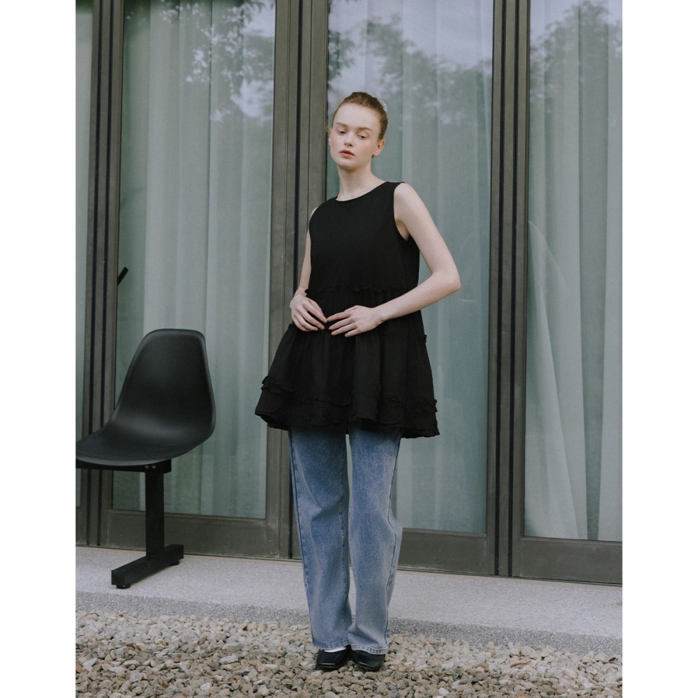 CC.DAILY-層次荷葉無袖短洋(二色)-女【J2CO129】01白,S|01白,M|09黑,S|09黑,Mcaco_tw