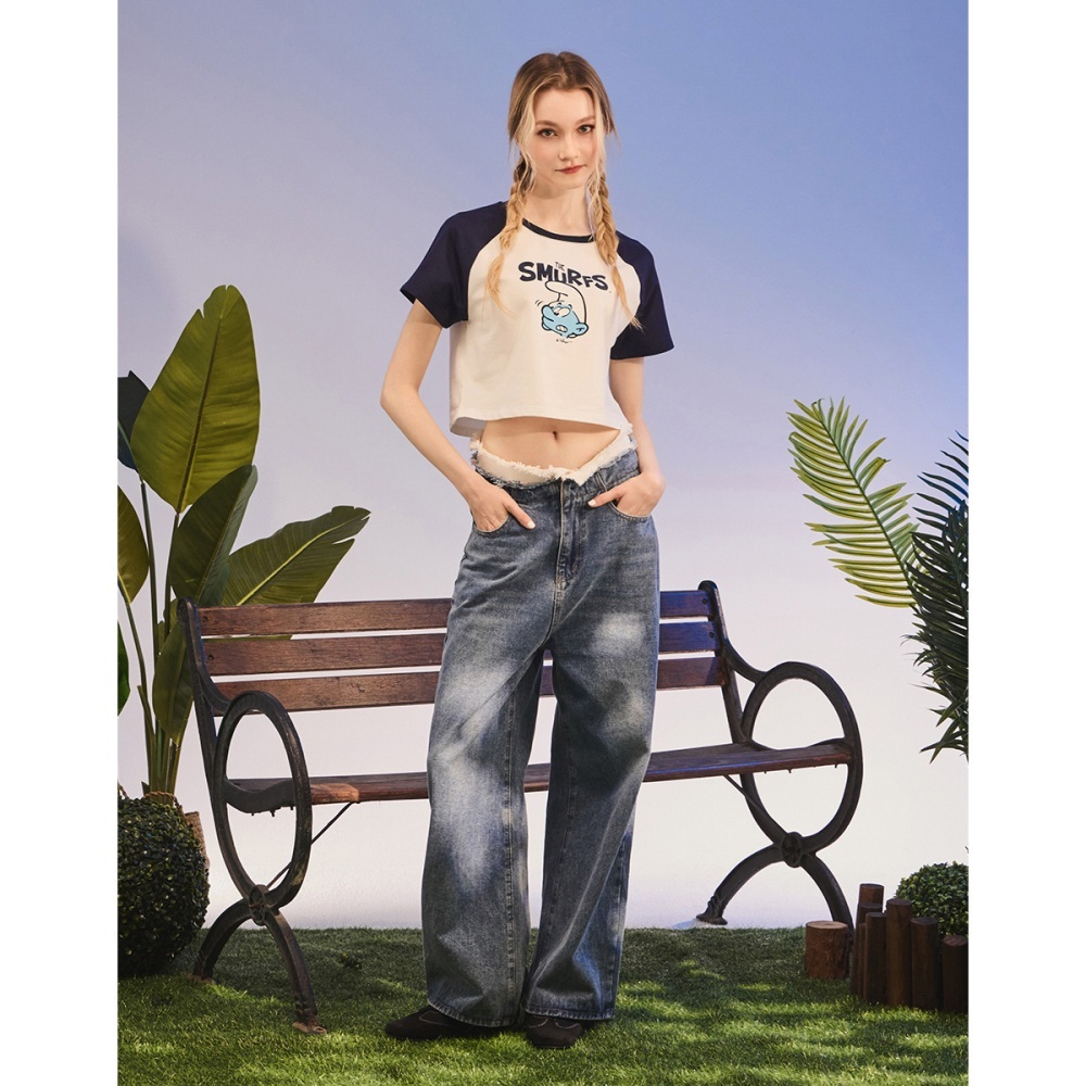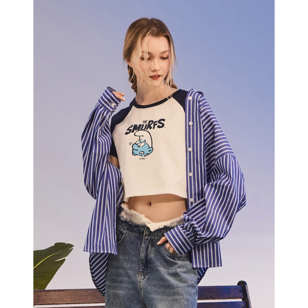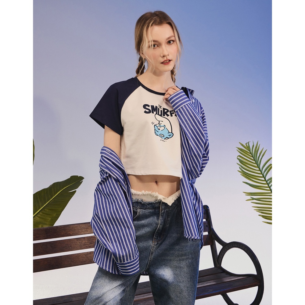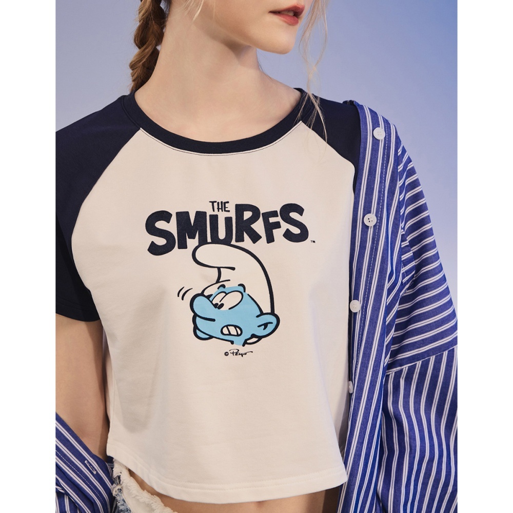CACO-藍色小精靈拉克蘭袖短T-女【J2SF004】02米白,S|02米白,MT-shirtscaco_tw