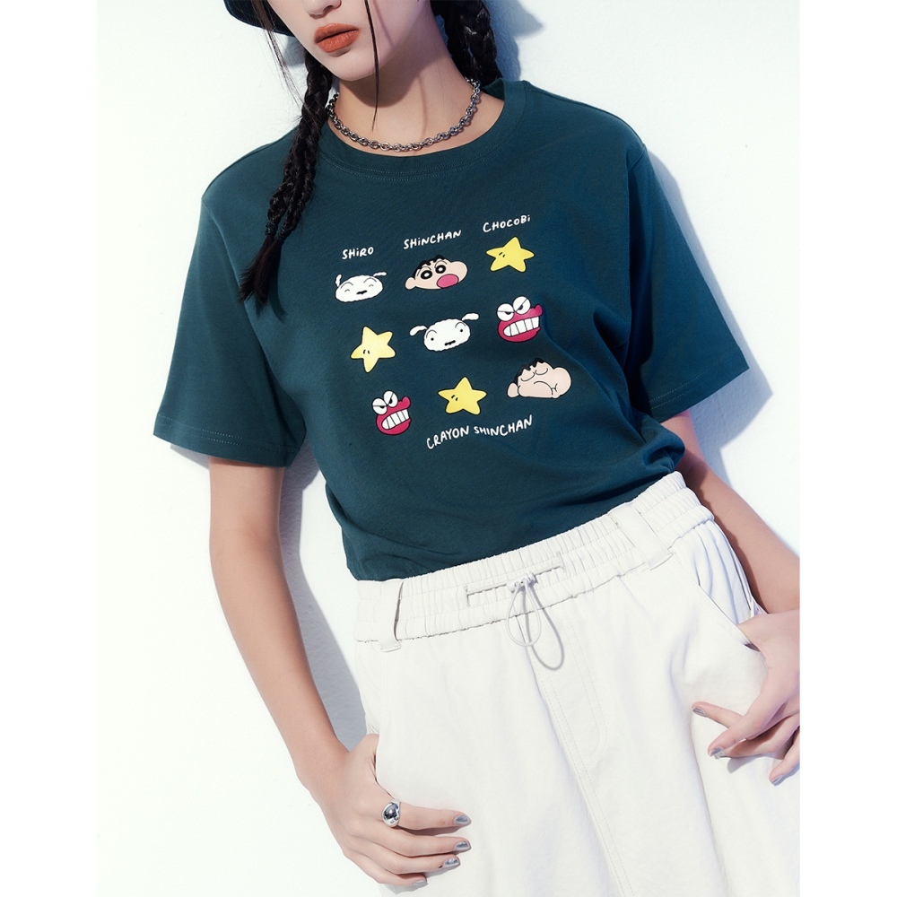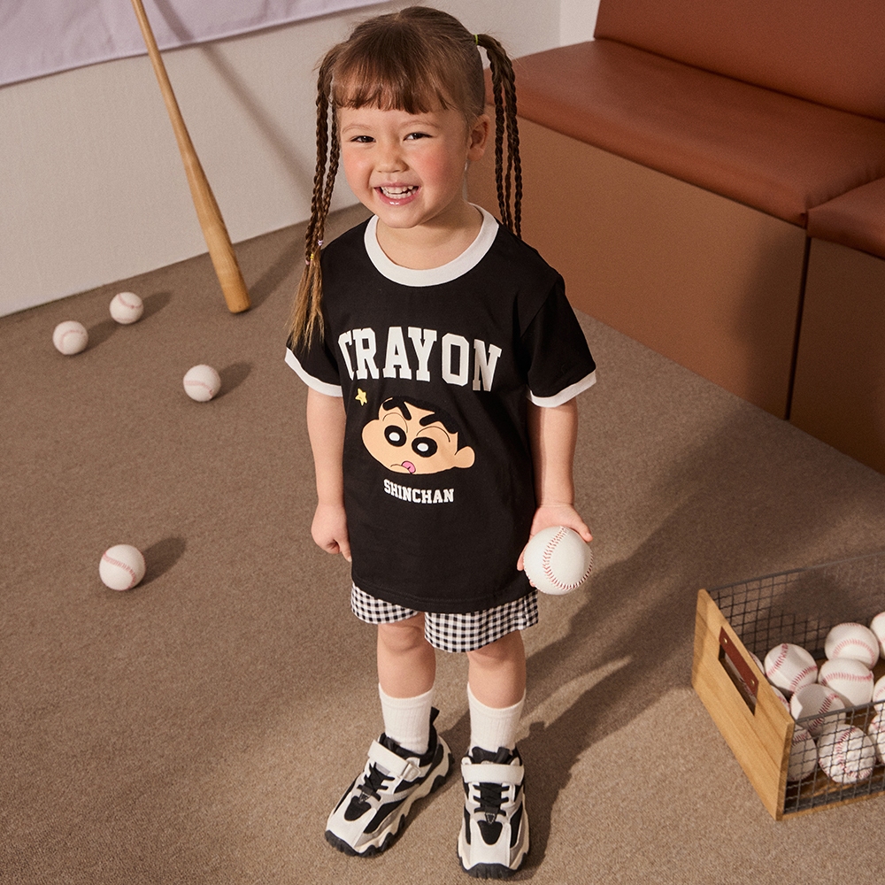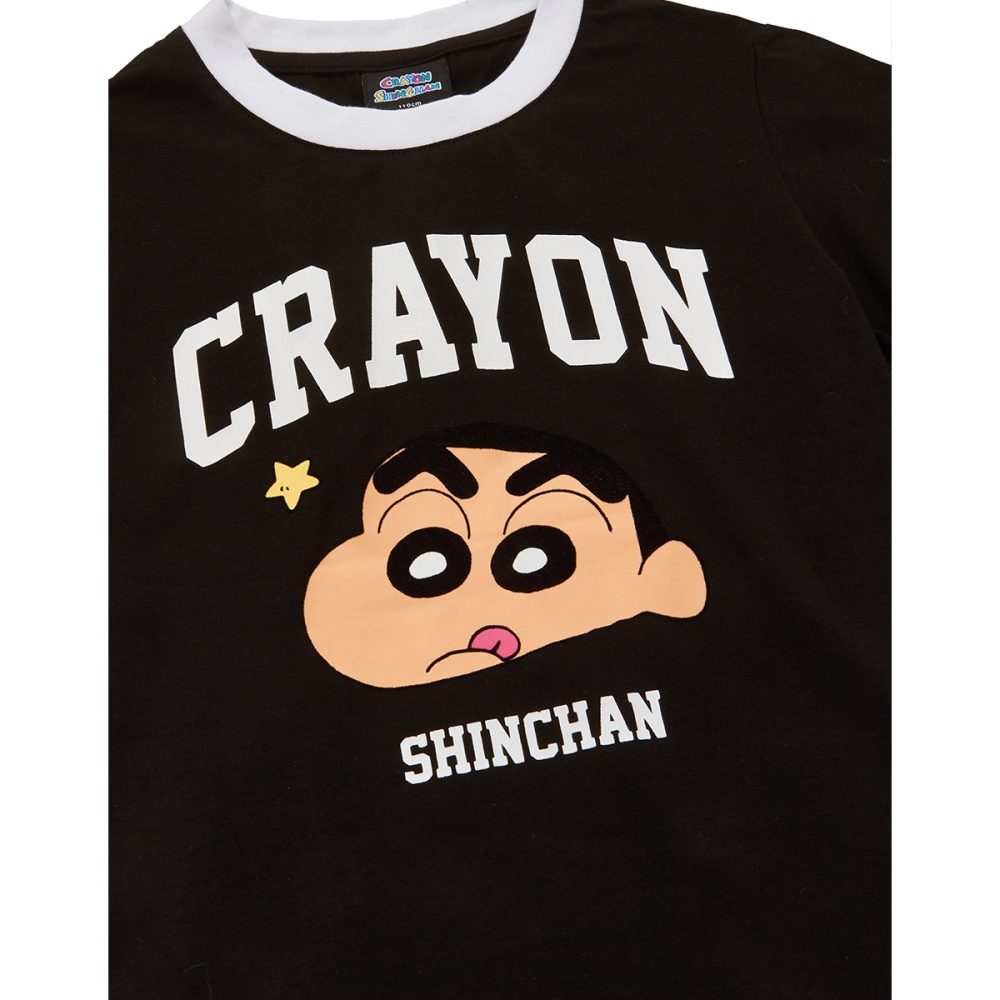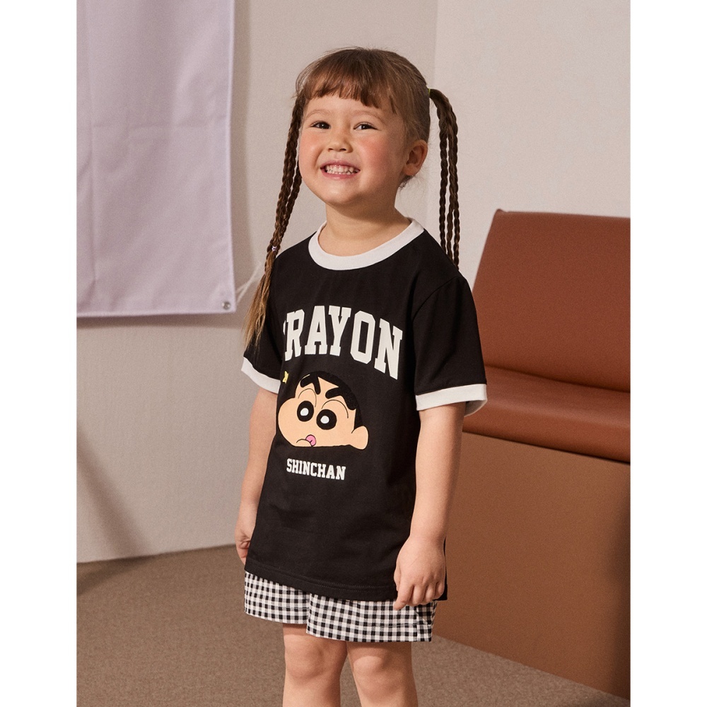 CACO-蠟筆小新涼感撞色上衣‧親子款-童【J3SC016】09黑,100|09黑,110|09黑,120|09黑,130|09黑,140|09黑,150Topscaco_tw