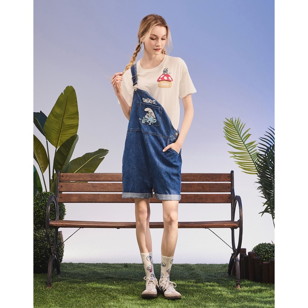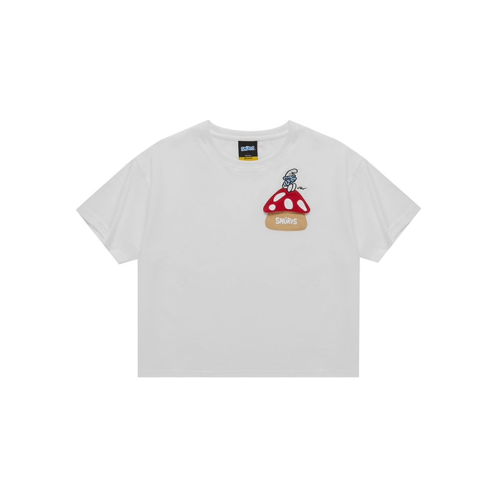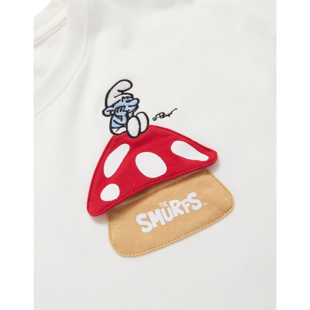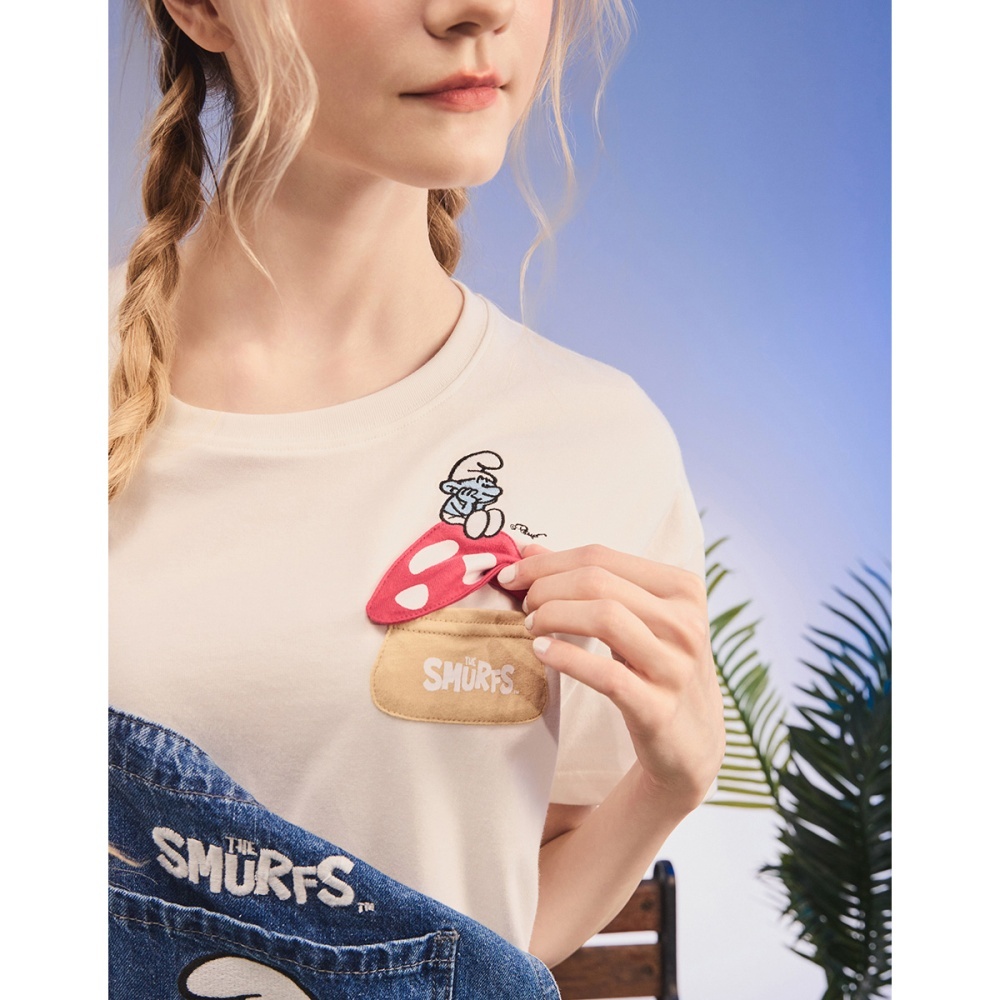 CACO-藍色小精靈蘑菇口袋短T-女【J2SF003】02米白,S|02米白,MT-shirtscaco_tw