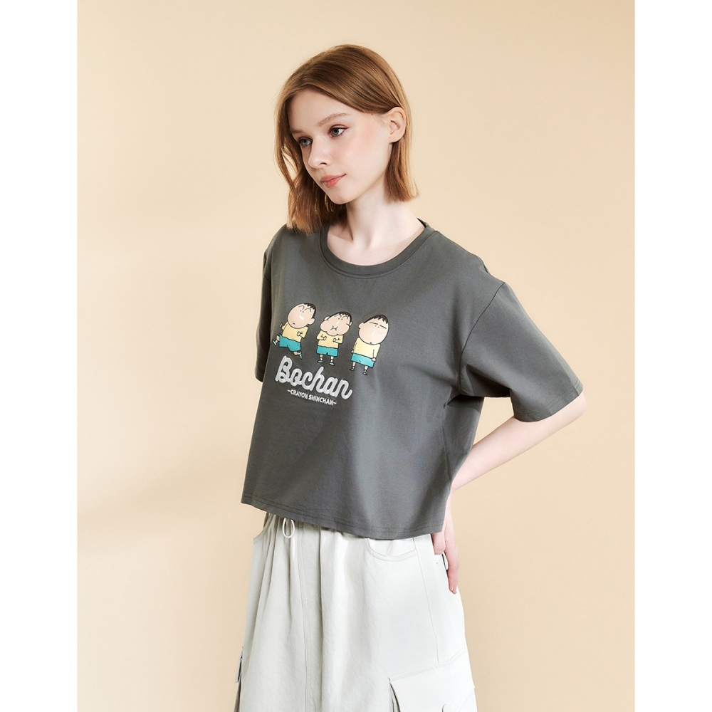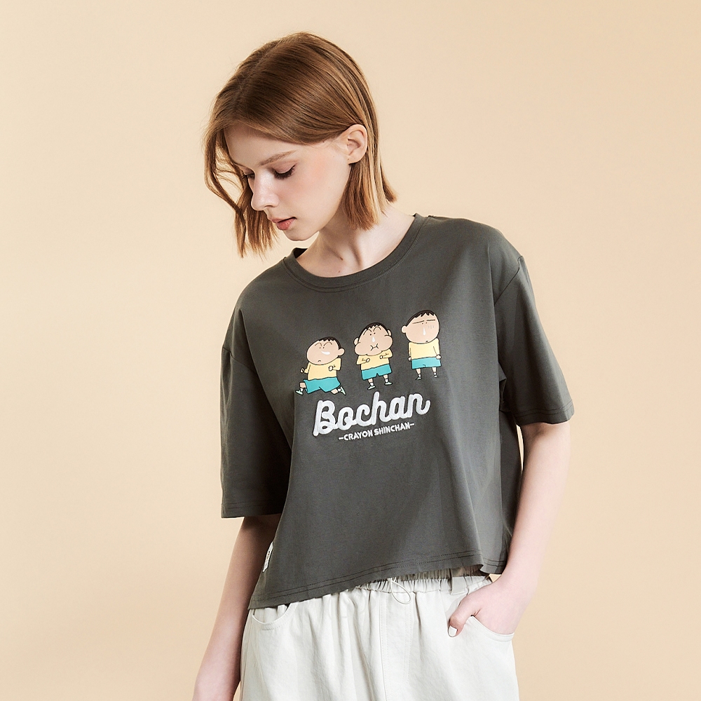 CACO-阿呆涼感短版上衣‧親子款-女【J2SC032】12深灰,S|12深灰,MT-shirtscaco_tw