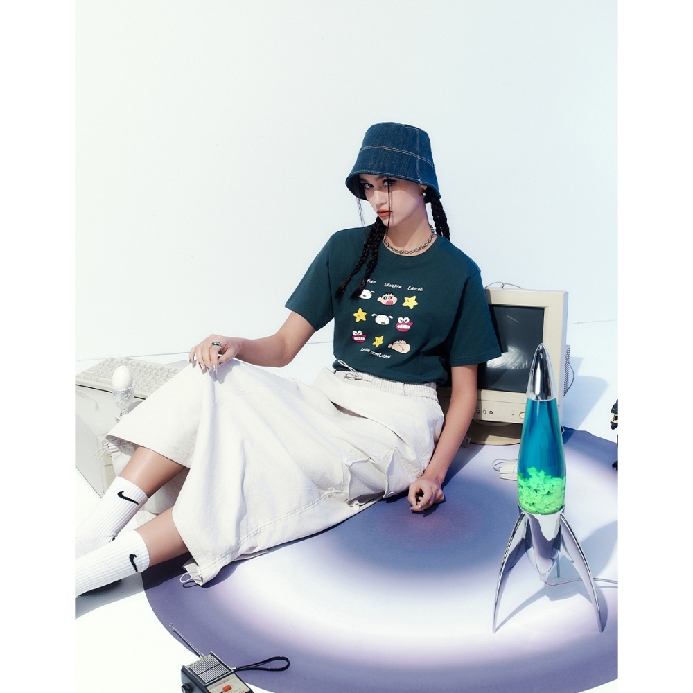 CACO-MIT 小新小白巧克比短T‧親子款-男女共穿【J1SC509】75藍綠,XS|75藍綠,S|75藍綠,M|75藍綠,L|75藍綠,XL|75藍綠,2LT-Shirtscaco_tw
