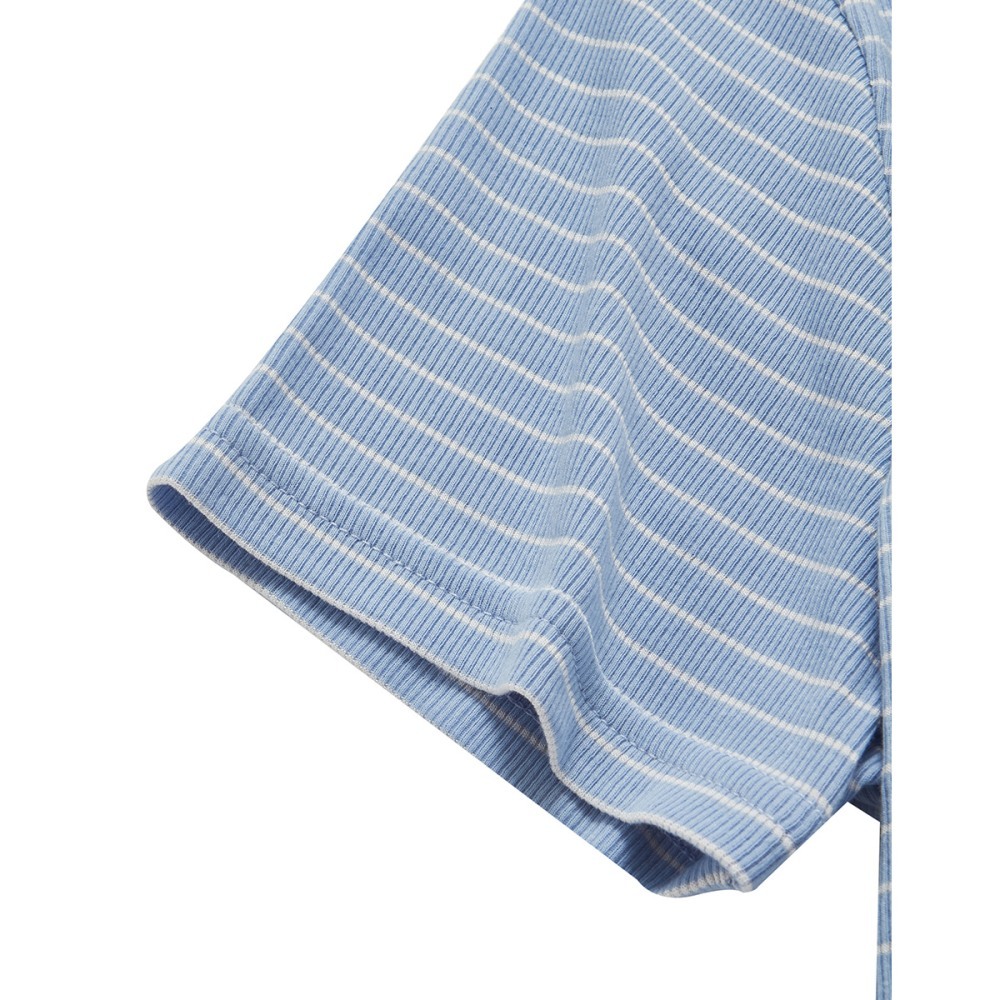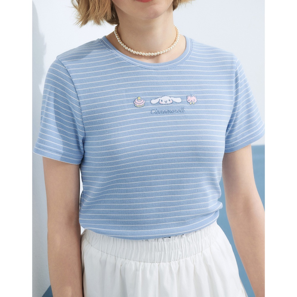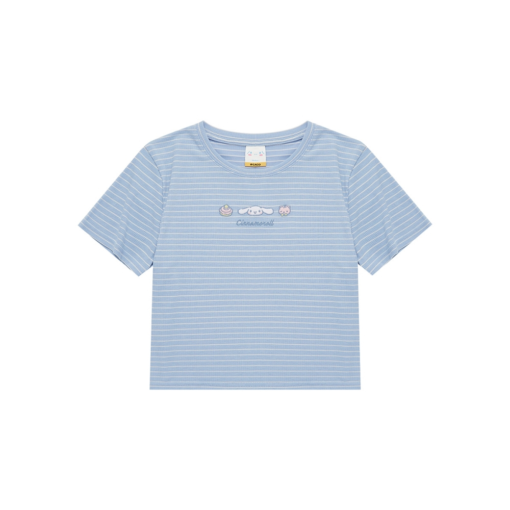 CACO-大耳狗坑條合身上衣‧親子款-女【J2SA027】70淺藍,S|70淺藍,M|70淺藍,LT-shirtscaco_tw