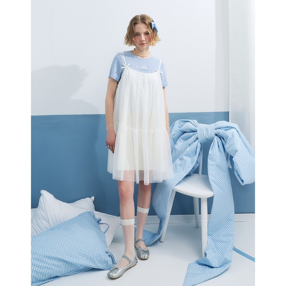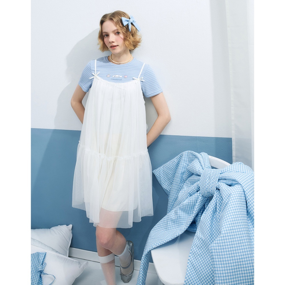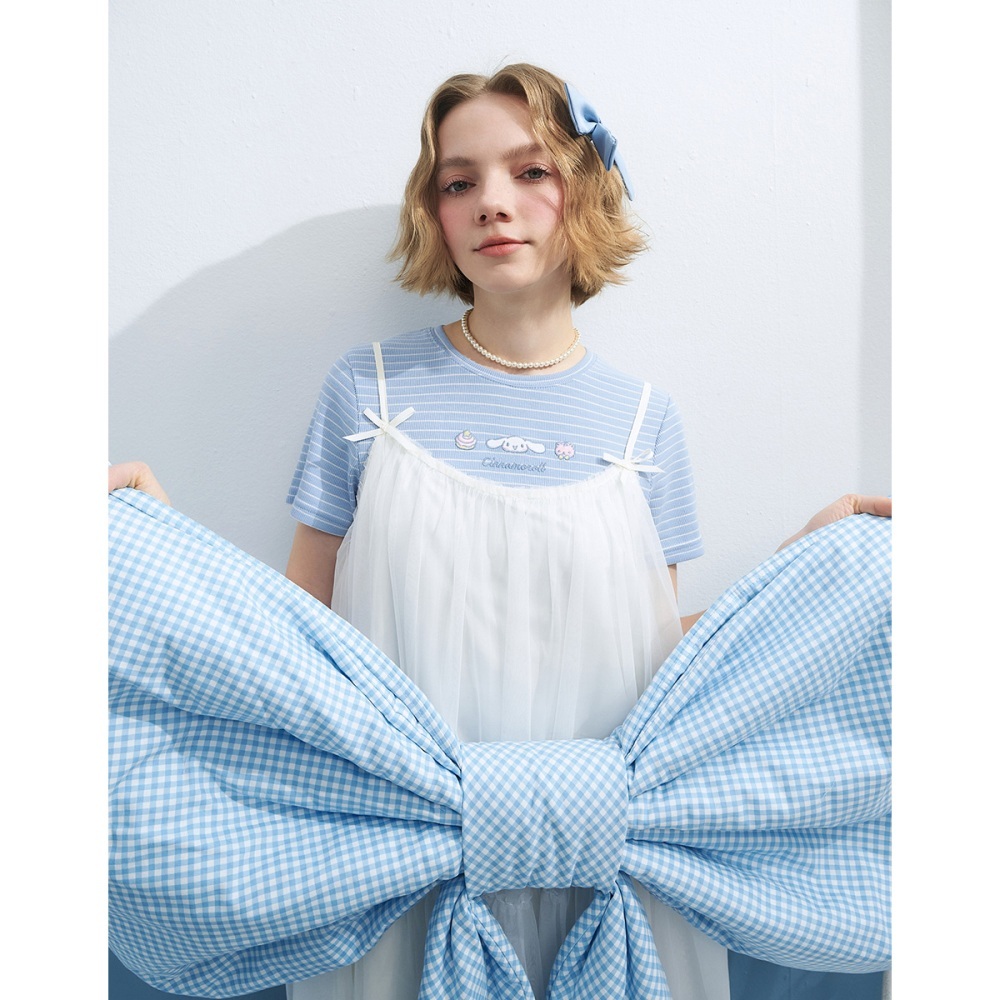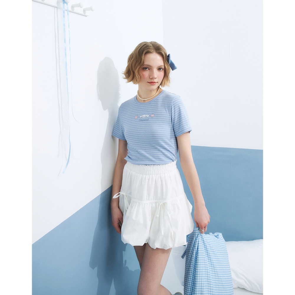 CACO-大耳狗坑條合身上衣‧親子款-女【J2SA027】70淺藍,S|70淺藍,M|70淺藍,LT-shirtscaco_tw