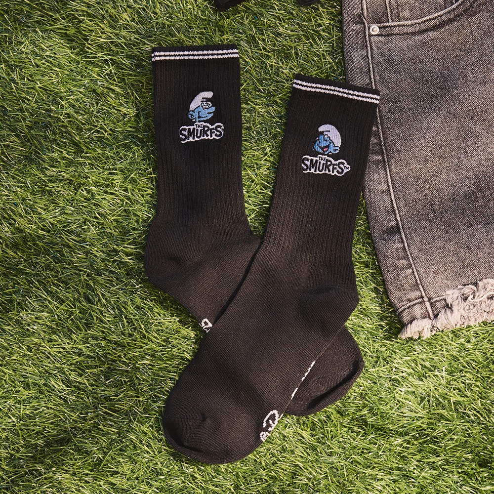CACO-MIT 藍色小精靈撞色中長襪-女【J2SF015】09黑,FSockscaco_tw