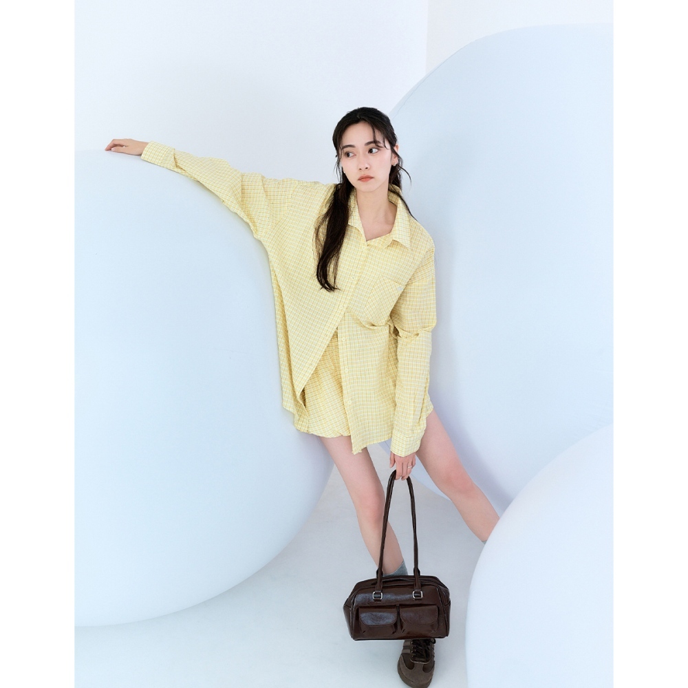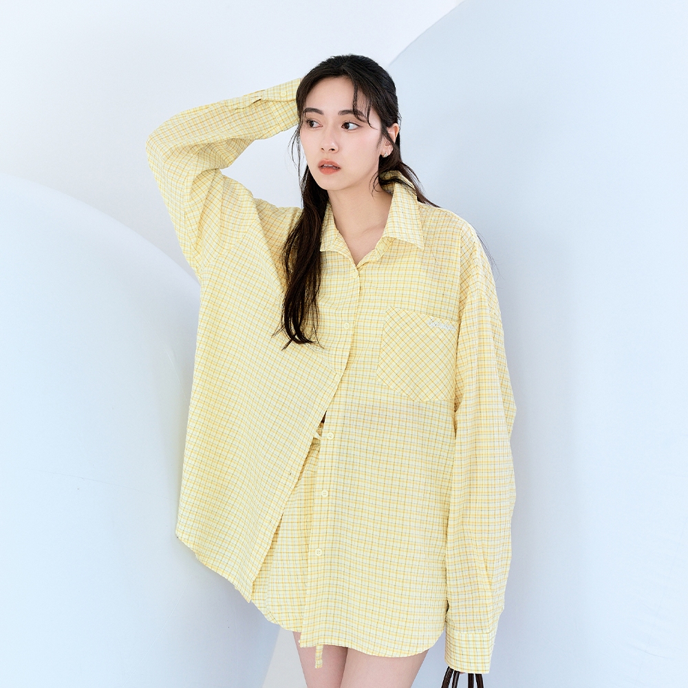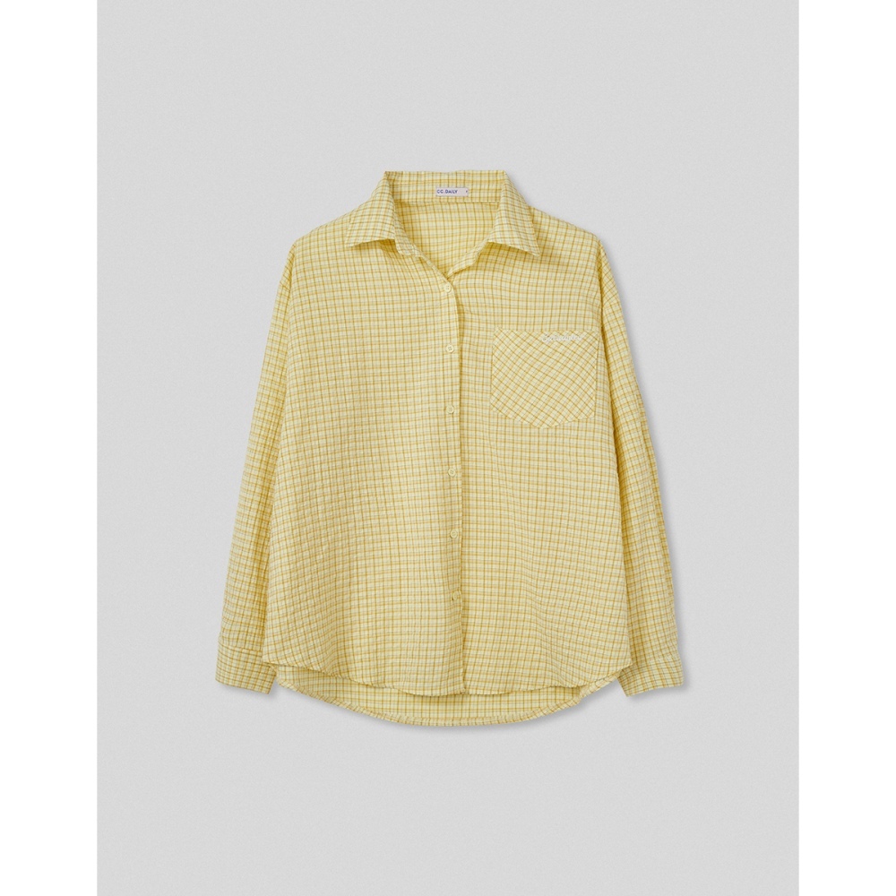 CC.DAILY-泡泡細格寬鬆襯衫(二色)-女【J2CO136】52黃,F|70淺藍,FShirts & Blousescaco_tw