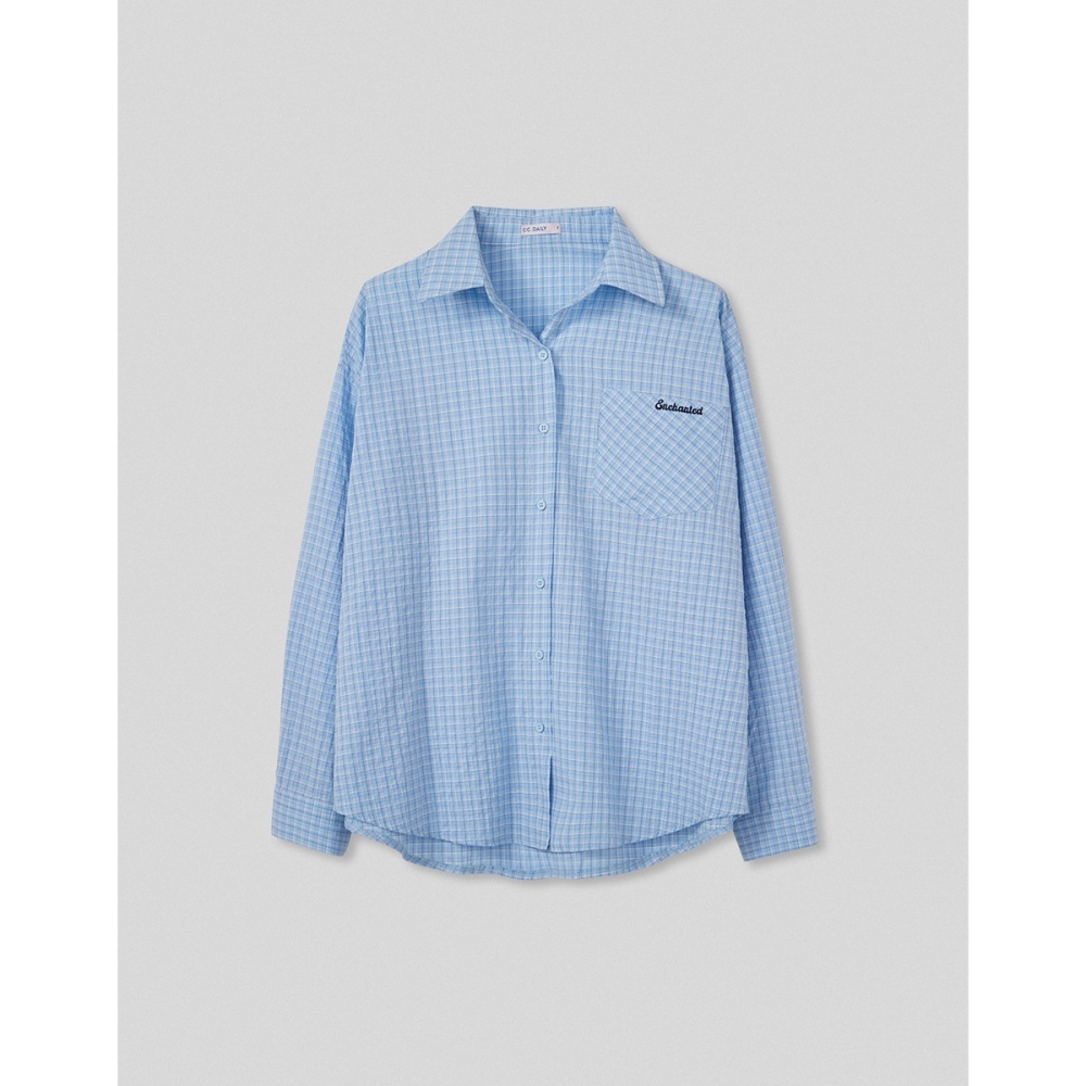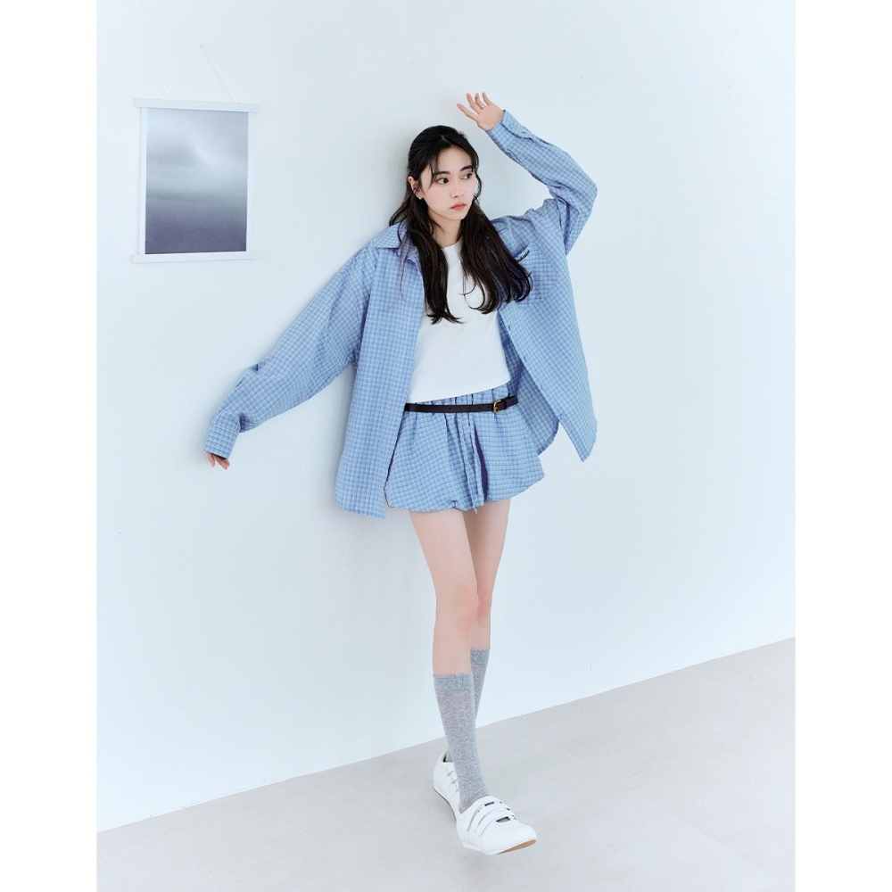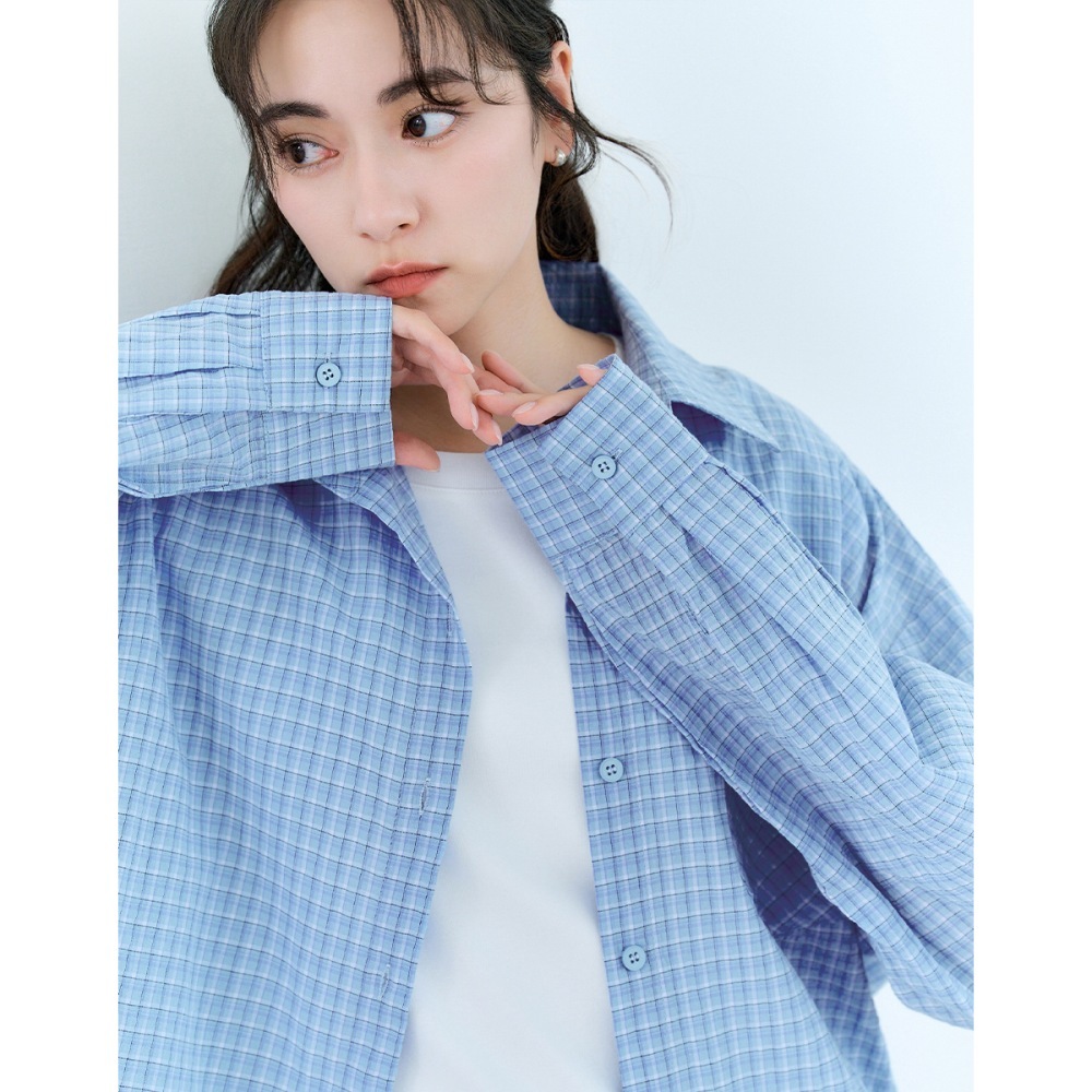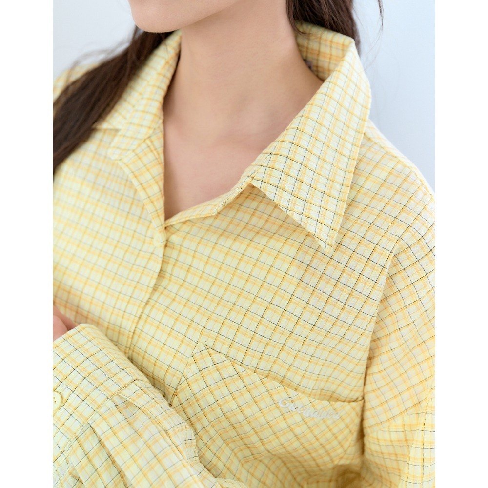 CC.DAILY-泡泡細格寬鬆襯衫(二色)-女【J2CO136】52黃,F|70淺藍,FShirts & Blousescaco_tw