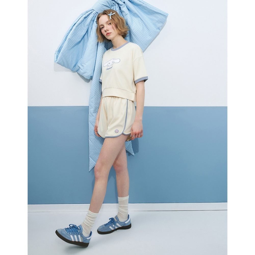 CACO-大耳狗貼布華夫格套裝‧親子款-女【J2SA031】27淺杏,S|27淺杏,M|27淺杏,LIndividual Setscaco_tw