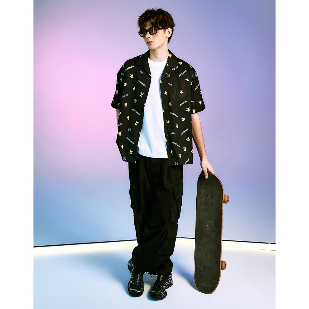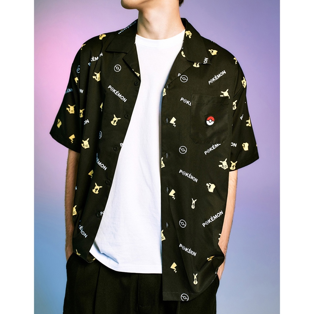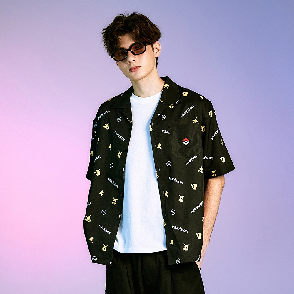 CACO-皮卡丘滿版開襟襯衫-男【J1PK007】09黑,S|09黑,M|09黑,L|09黑,XLShirtscaco_tw