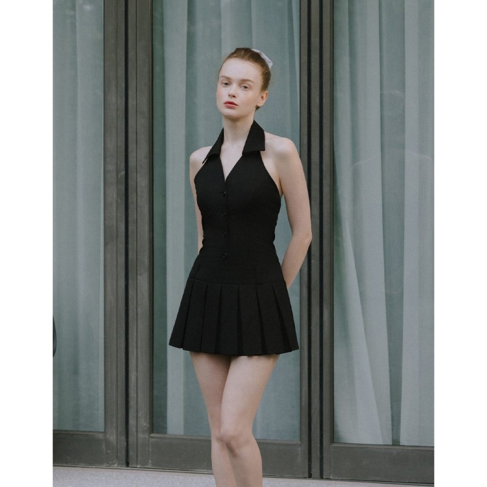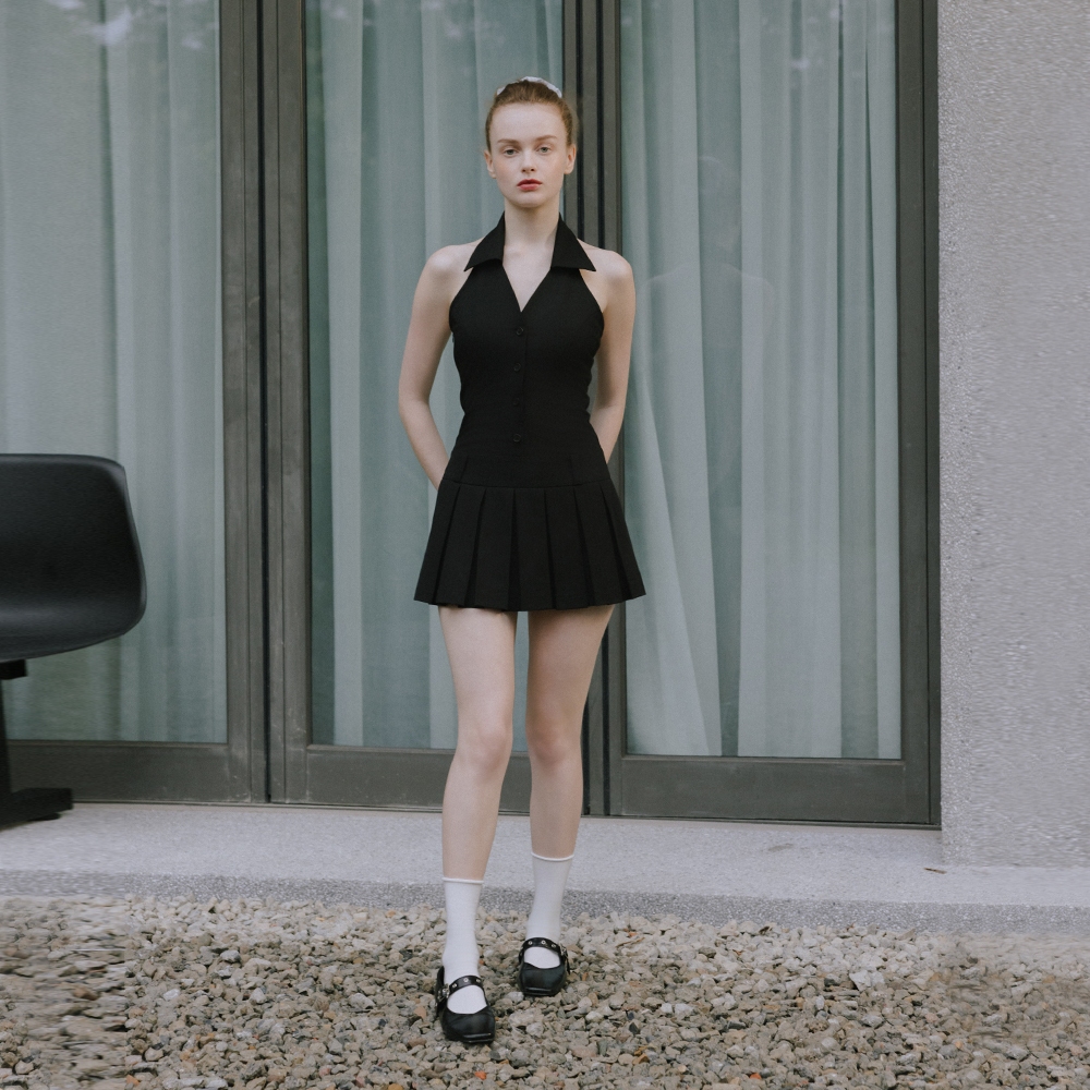 CC.DAILY-削肩V領百摺洋裝-女【J2CO064】09黑,S|09黑,M|09黑,Lcaco_tw