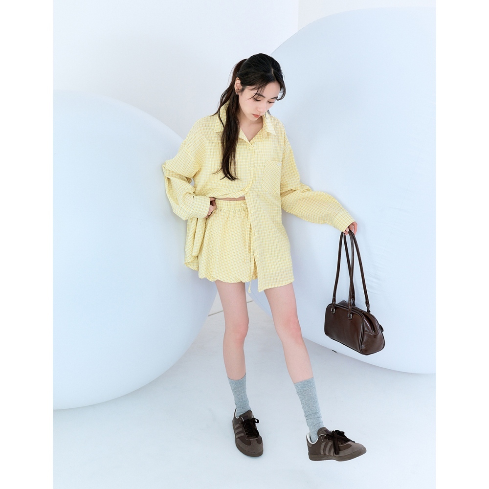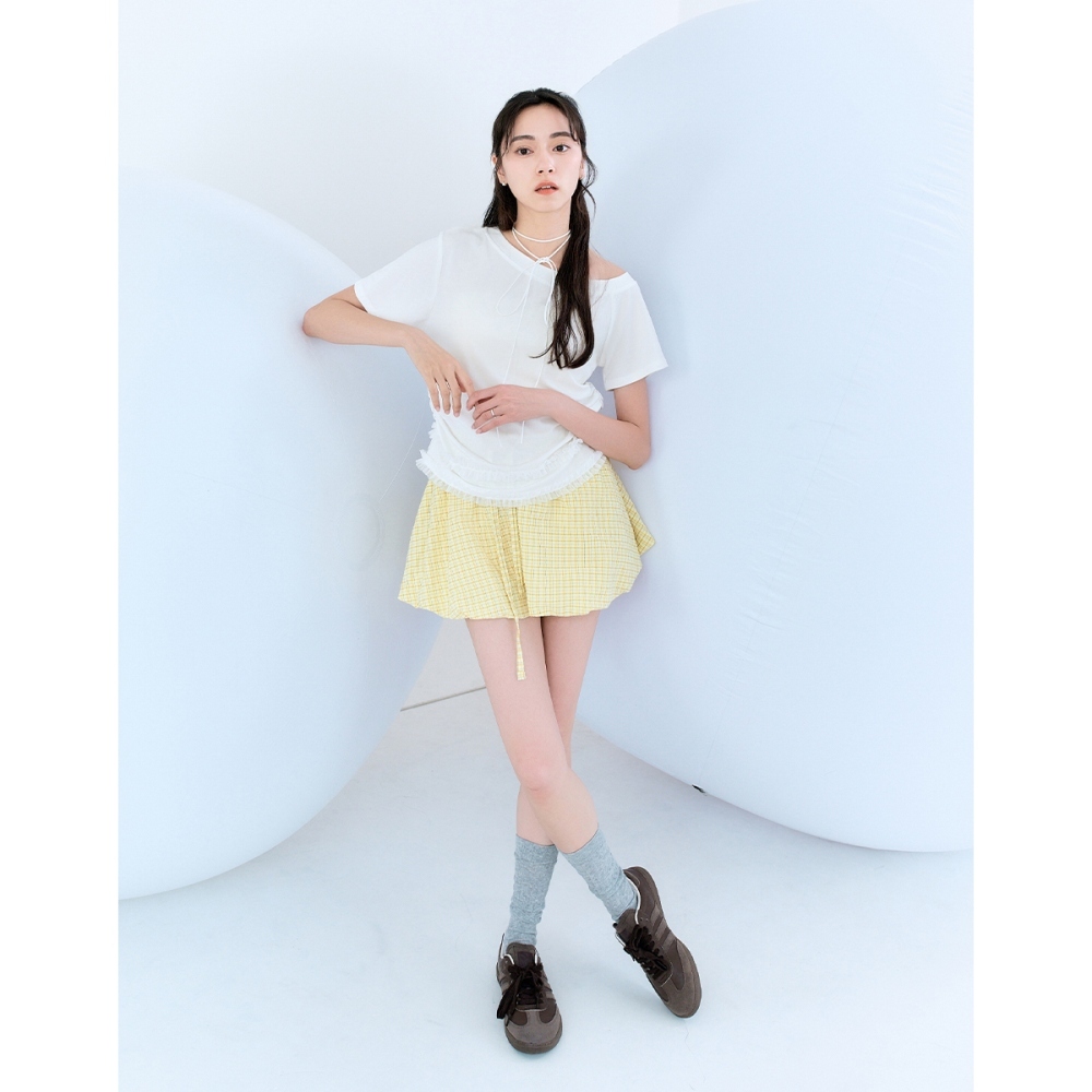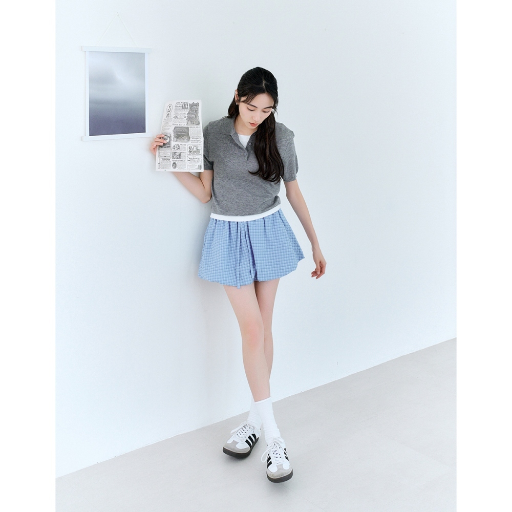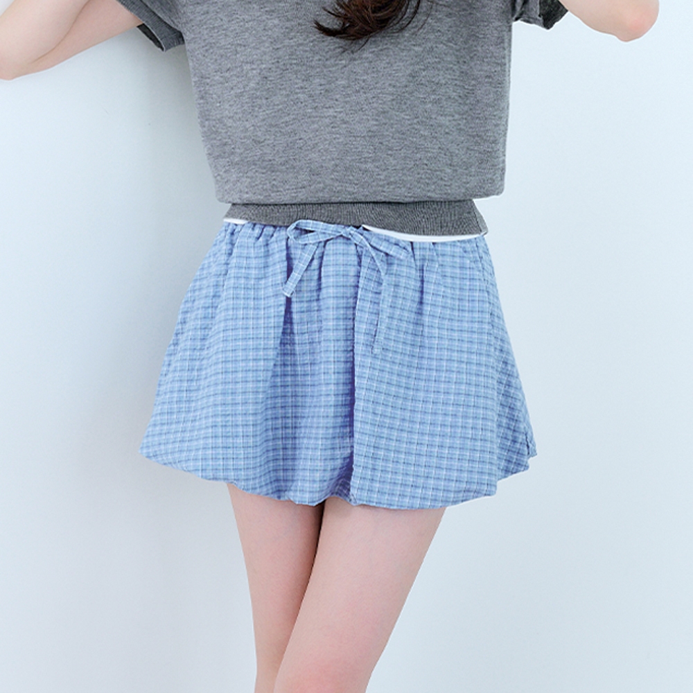 CC.DAILY-泡泡細格澎澎短裙(二色)-女【J2CO137】52黃,S|52黃,M|70淺藍,S|70淺藍,Mcaco_tw