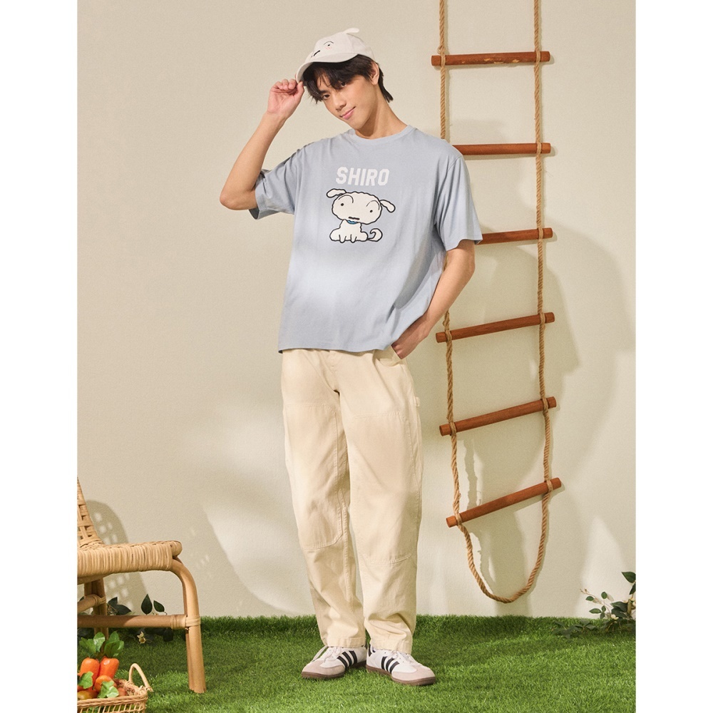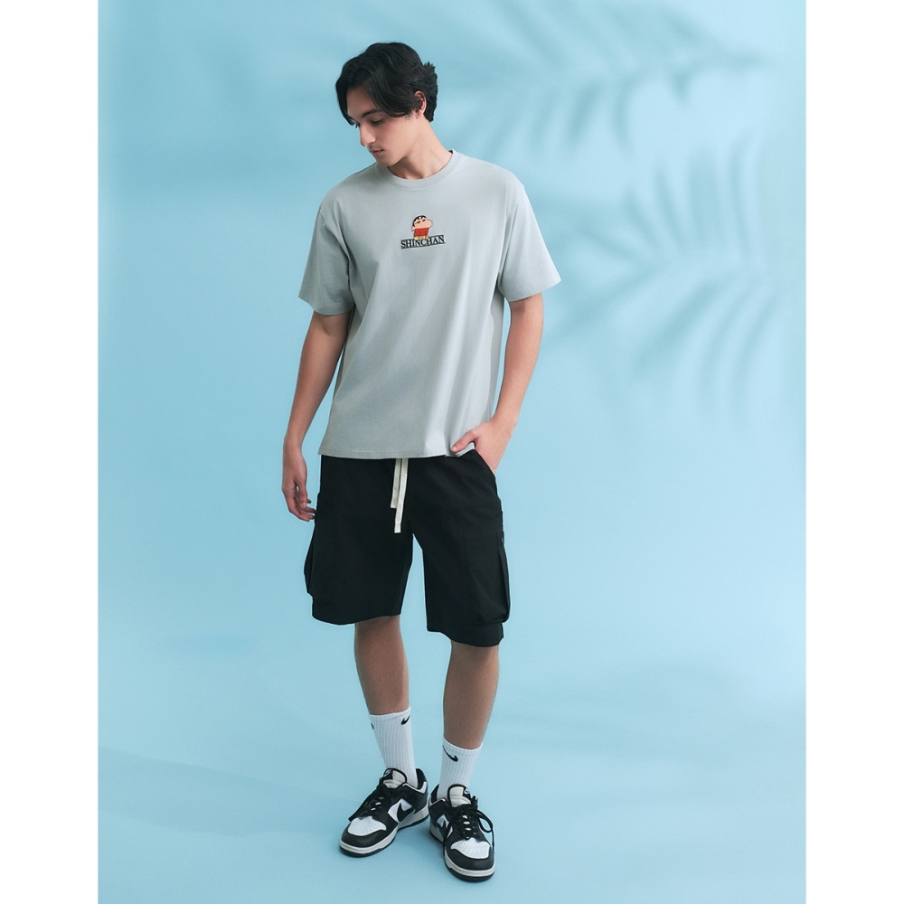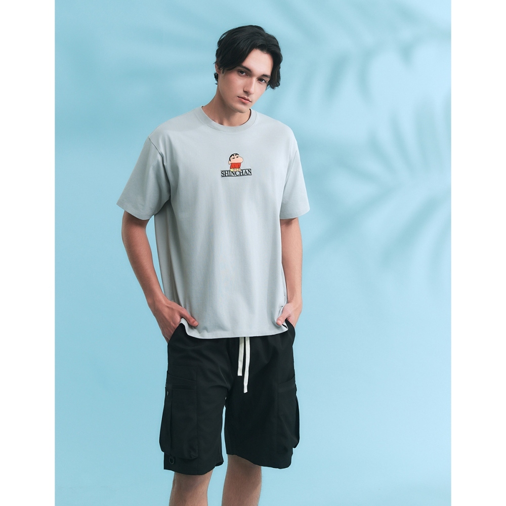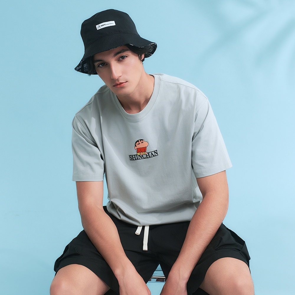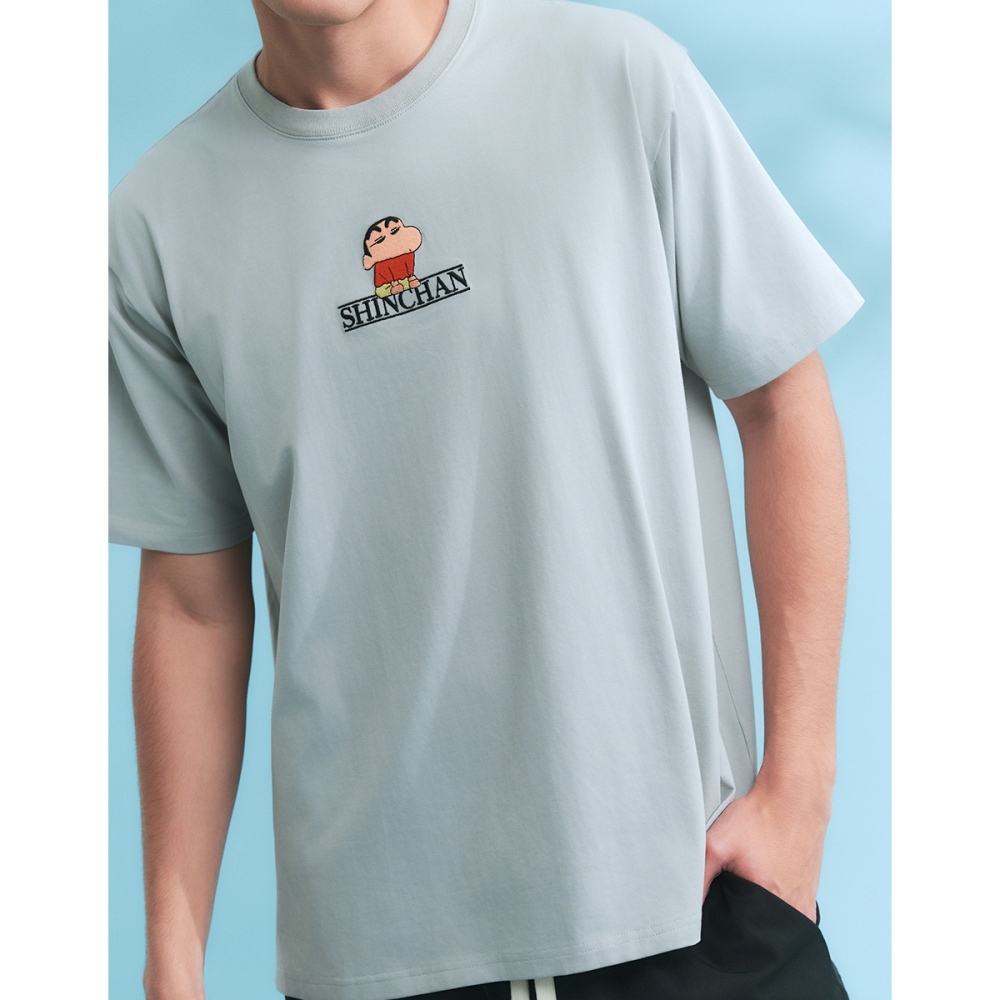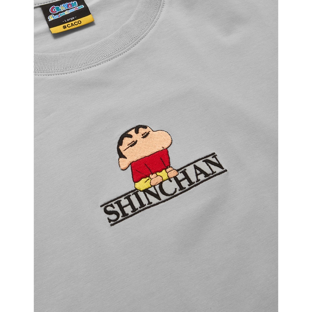 CACO-蠟筆小新刺繡涼感短T‧親子款-男【J1SC525】10淺灰,XS|10淺灰,S|10淺灰,M|10淺灰,L|10淺灰,XLT-Shirtscaco_tw